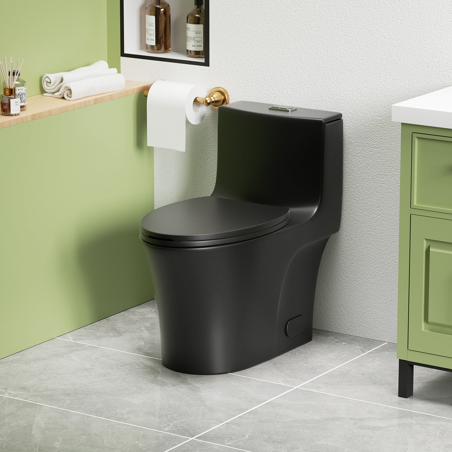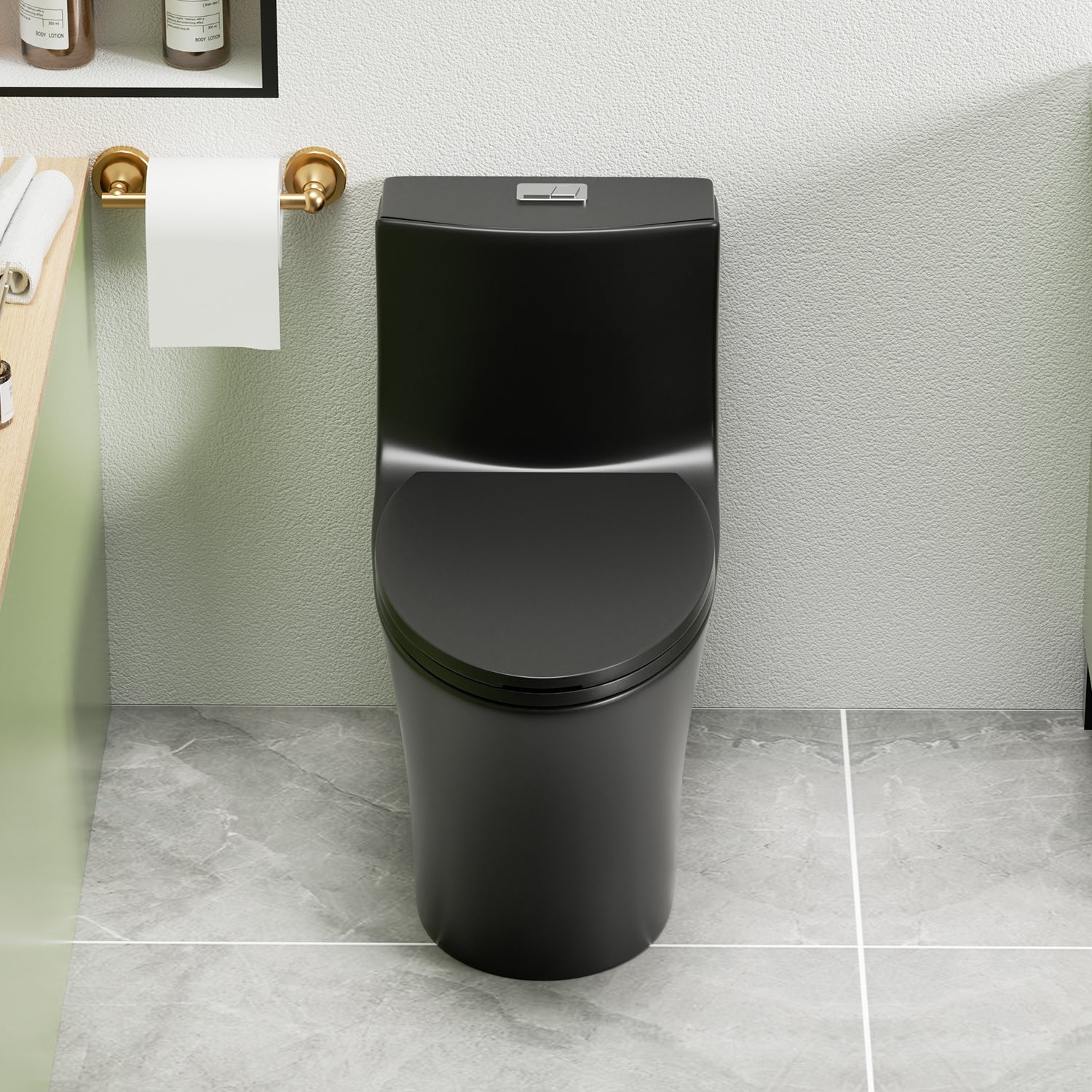- The toilet Features classic and Elegant lines on both the bowl and tank, adding a touch of sophistication to its design. The side curve lines and elongated bowl shape further enhance its aesthetic appeal, complemented by a matte black finish that exudes modern elegance, making it a stylish addition to any bathroom.