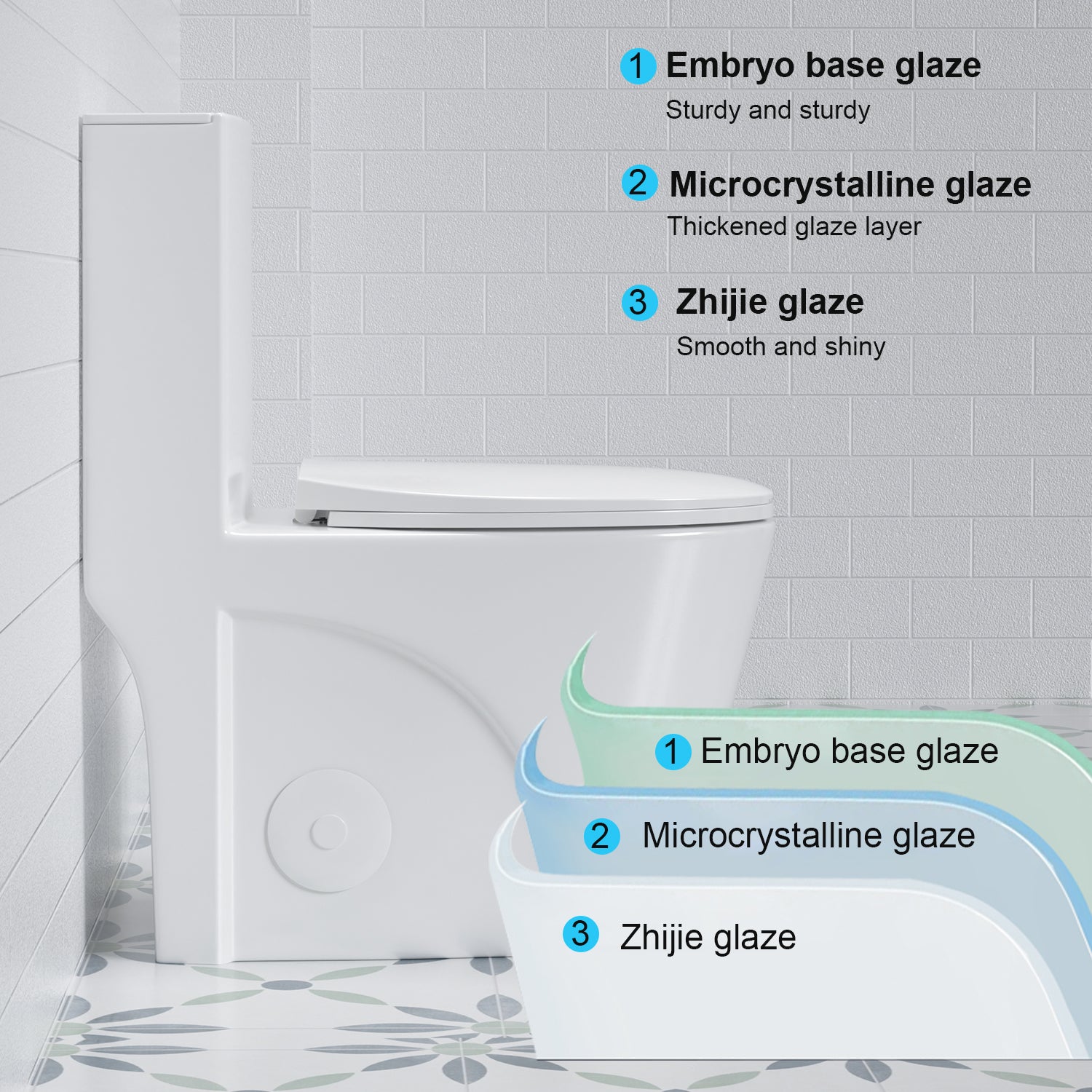 - Durable Material - Made from superior ceramic glaze, a blend of ceramic and glass particles, the toilet is highly resistant to scratches, stains, and wear, ensuring long-lasting durability.