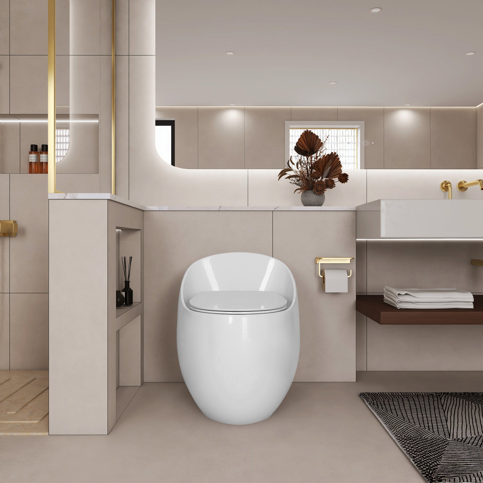 1-Piece 1.28 GPF Single Flush Egg Shape Toilet in Glossy White
