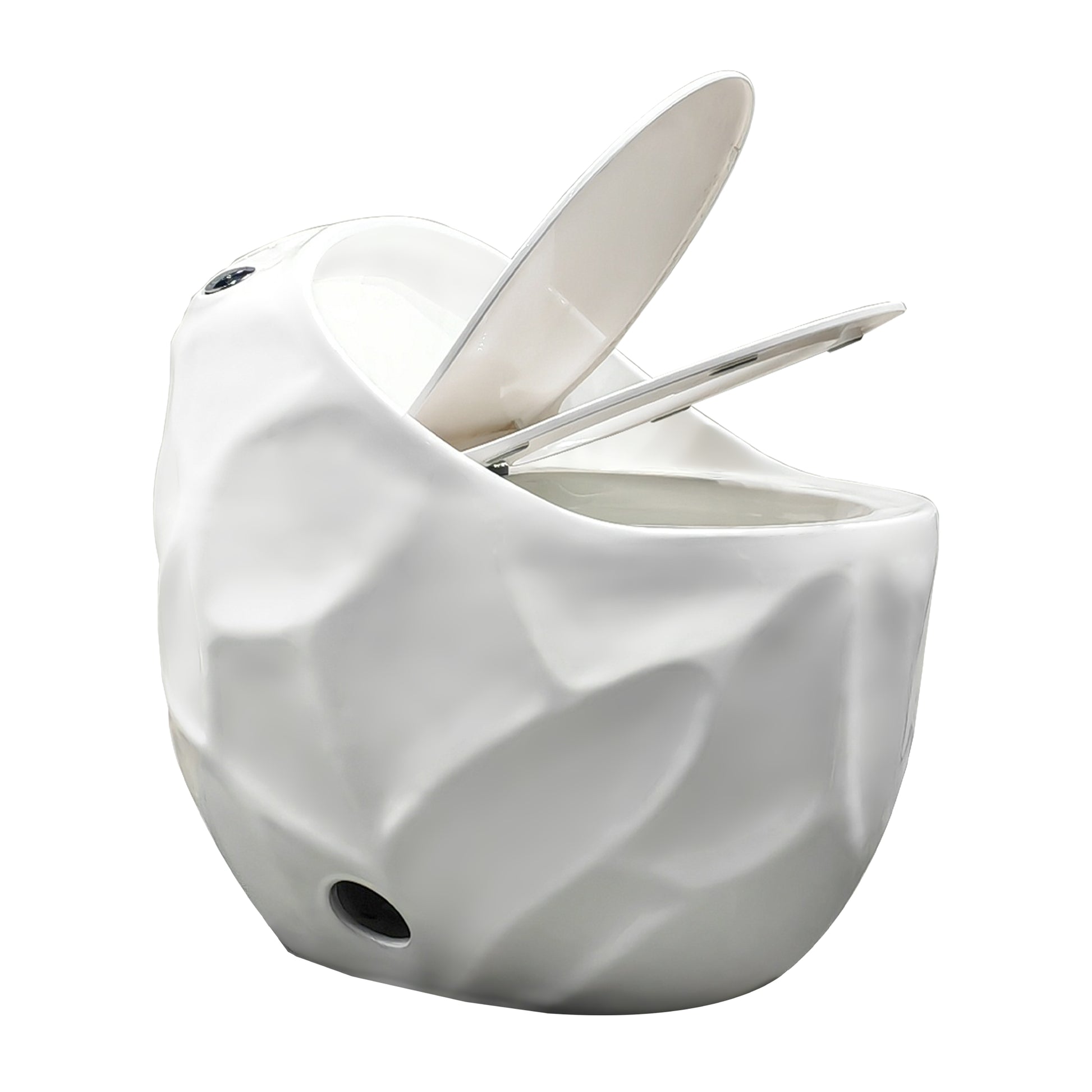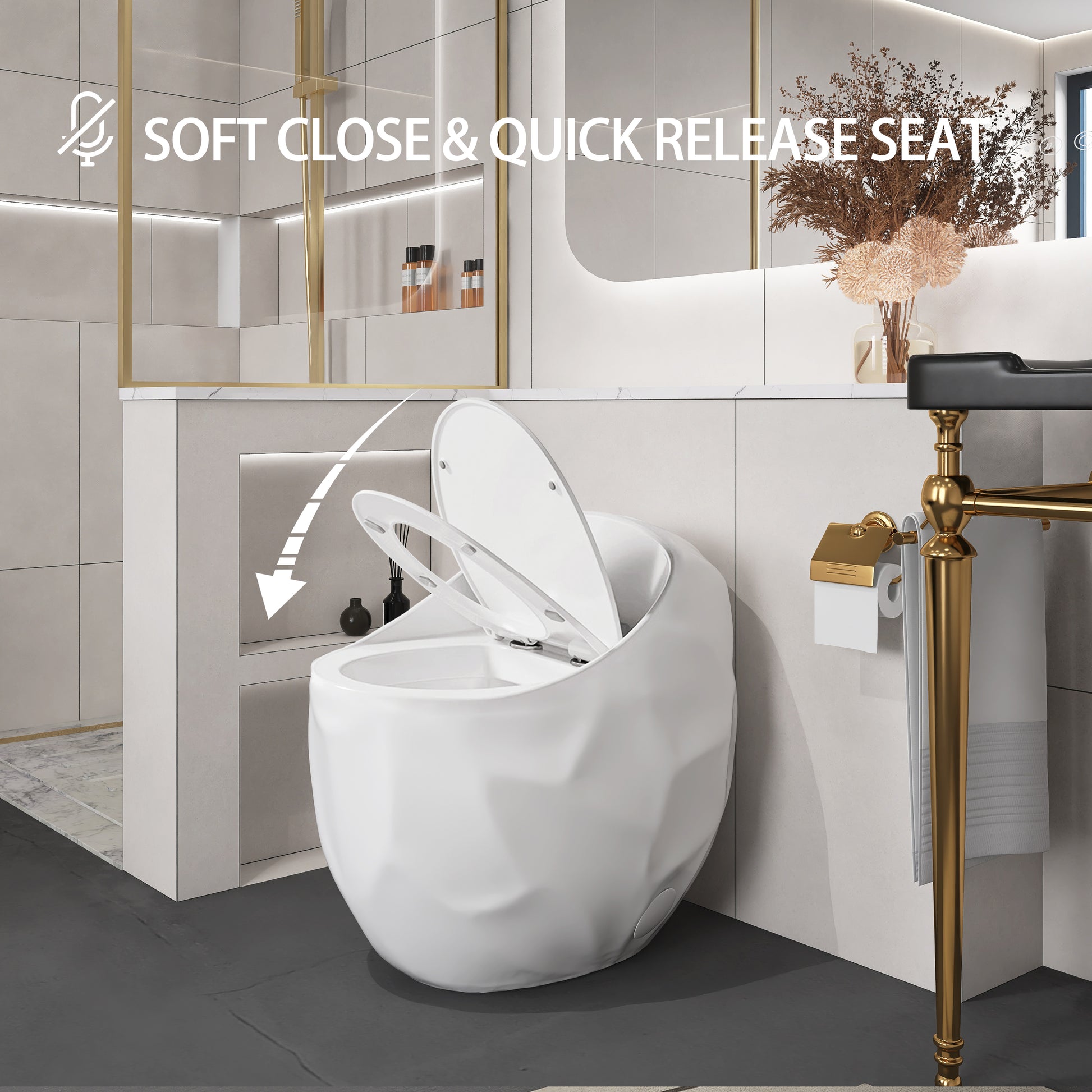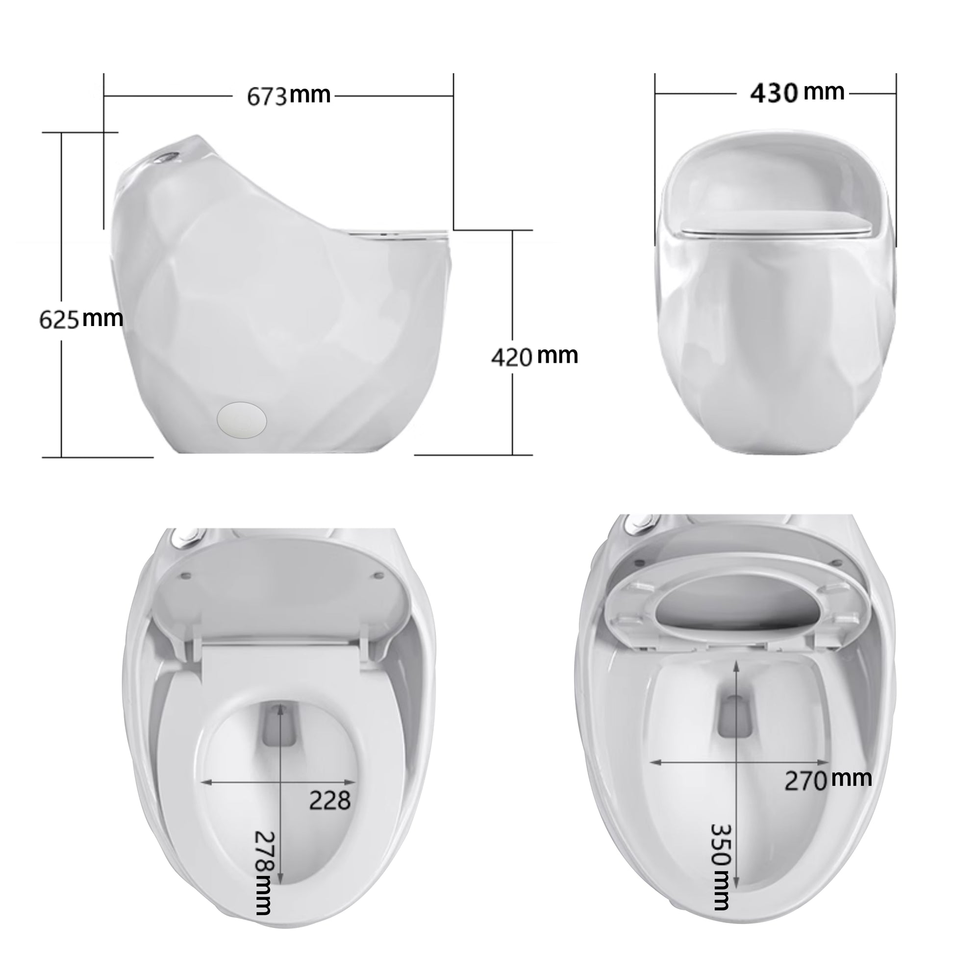 - Seamless porcelain one-piece with an easy-to-clean design.