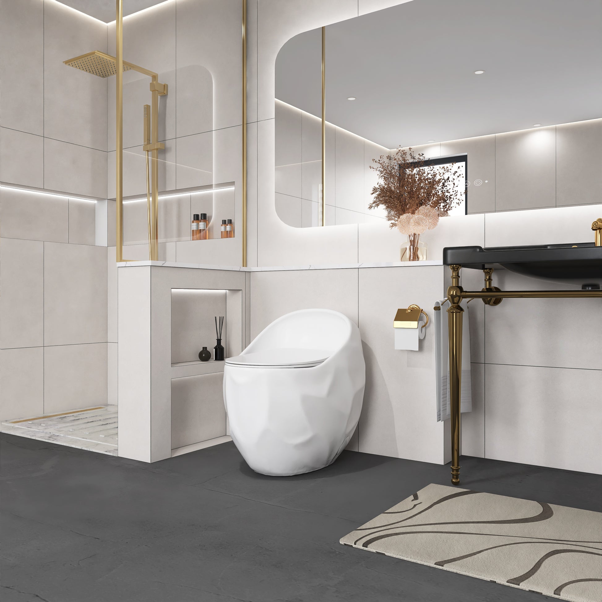 1-Piece 1.28 GPF Single Flush Egg Shape Toilet in Glossy White