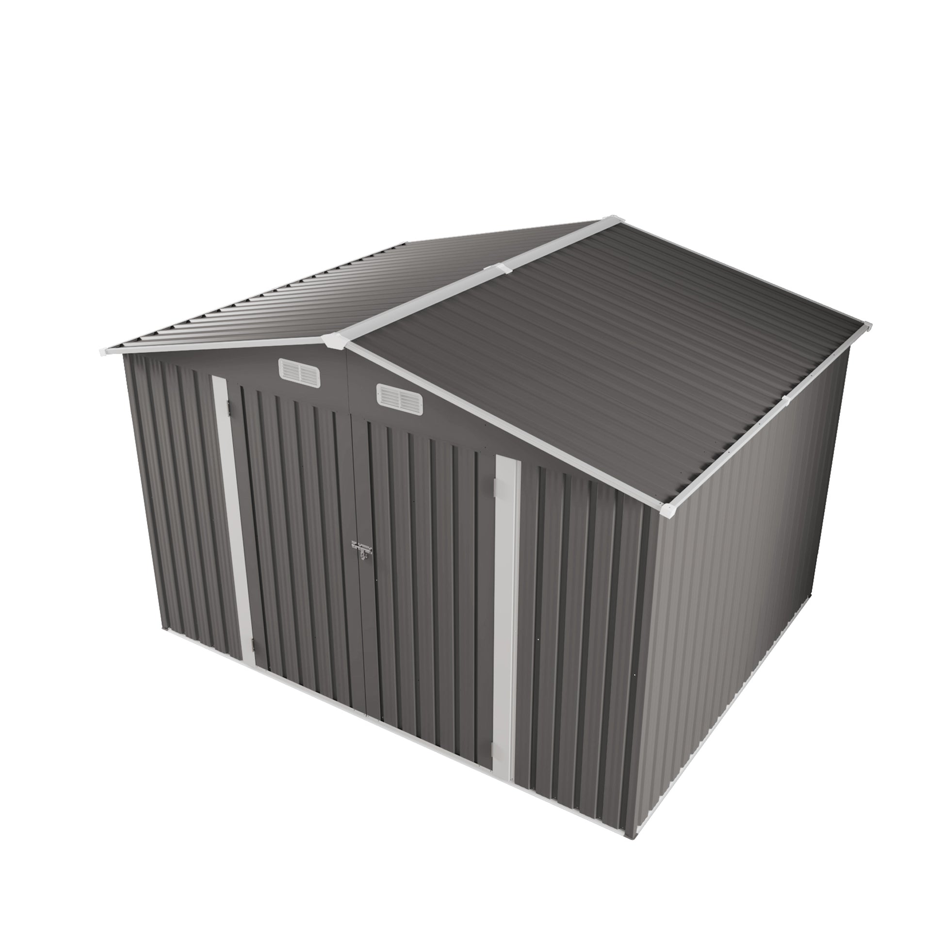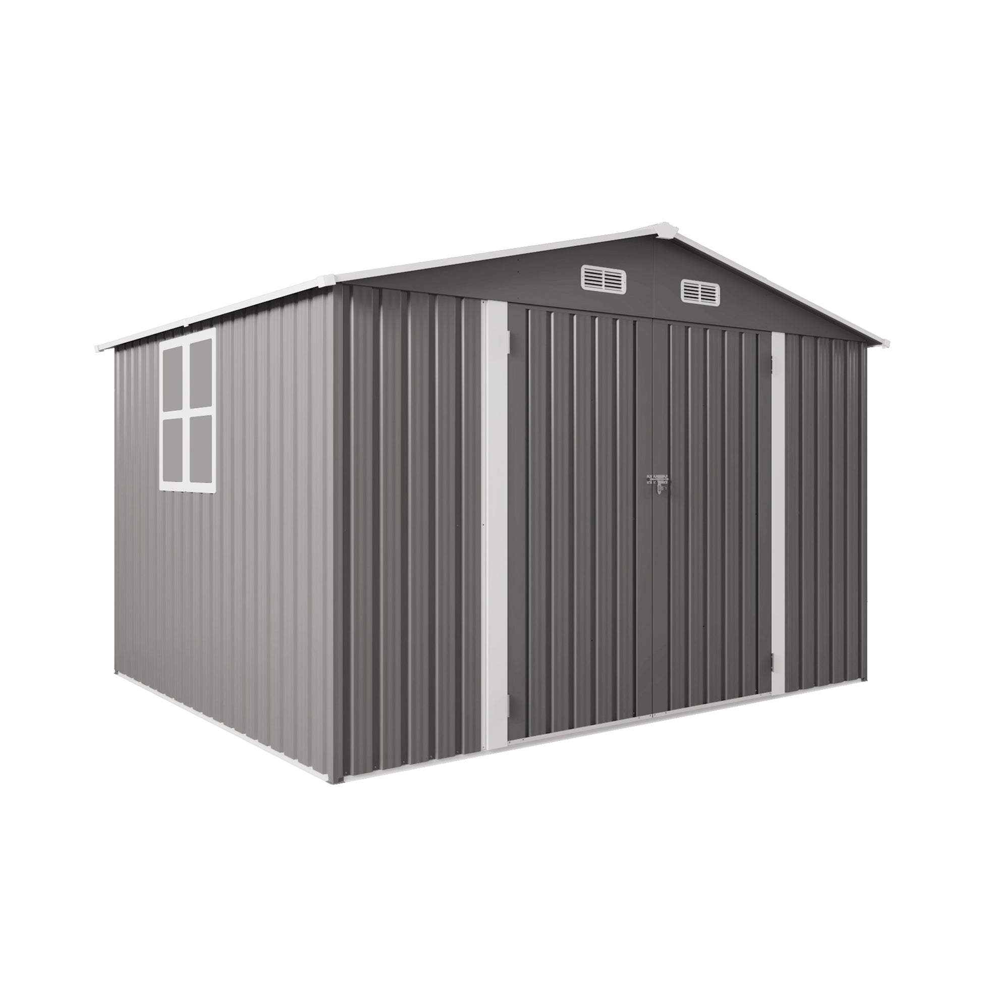 10 x 8 FT Outdoor Storage Shed, Large Metal Storage Shed, Lockable Door and Air Vent, Clear Window Garden Tool Shed for Bicycles, Tools, Lawnmowers, Backyards, Patios, Lawns - Gray