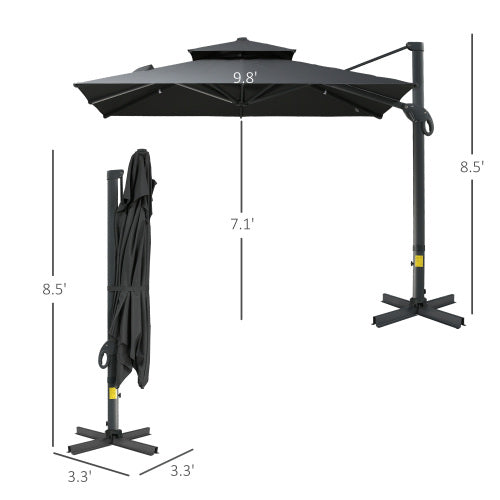 10ft Offset Patio Umbrella, Hanging Cantilever Umbrella, Square Shape, Aluminum Cross Base, Tilt, 360-Degree Rotation, Gray