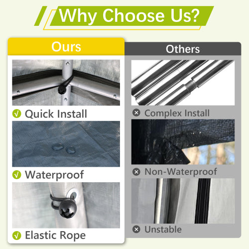 - 【Smart Climate Control System】Features dual mesh ventilation windows with precision Velcro seals that maintain optimal airflow while effectively preventing insect entry and moisture buildup. The innovative design keeps your storage space dry and well-ventilated in all seasons.