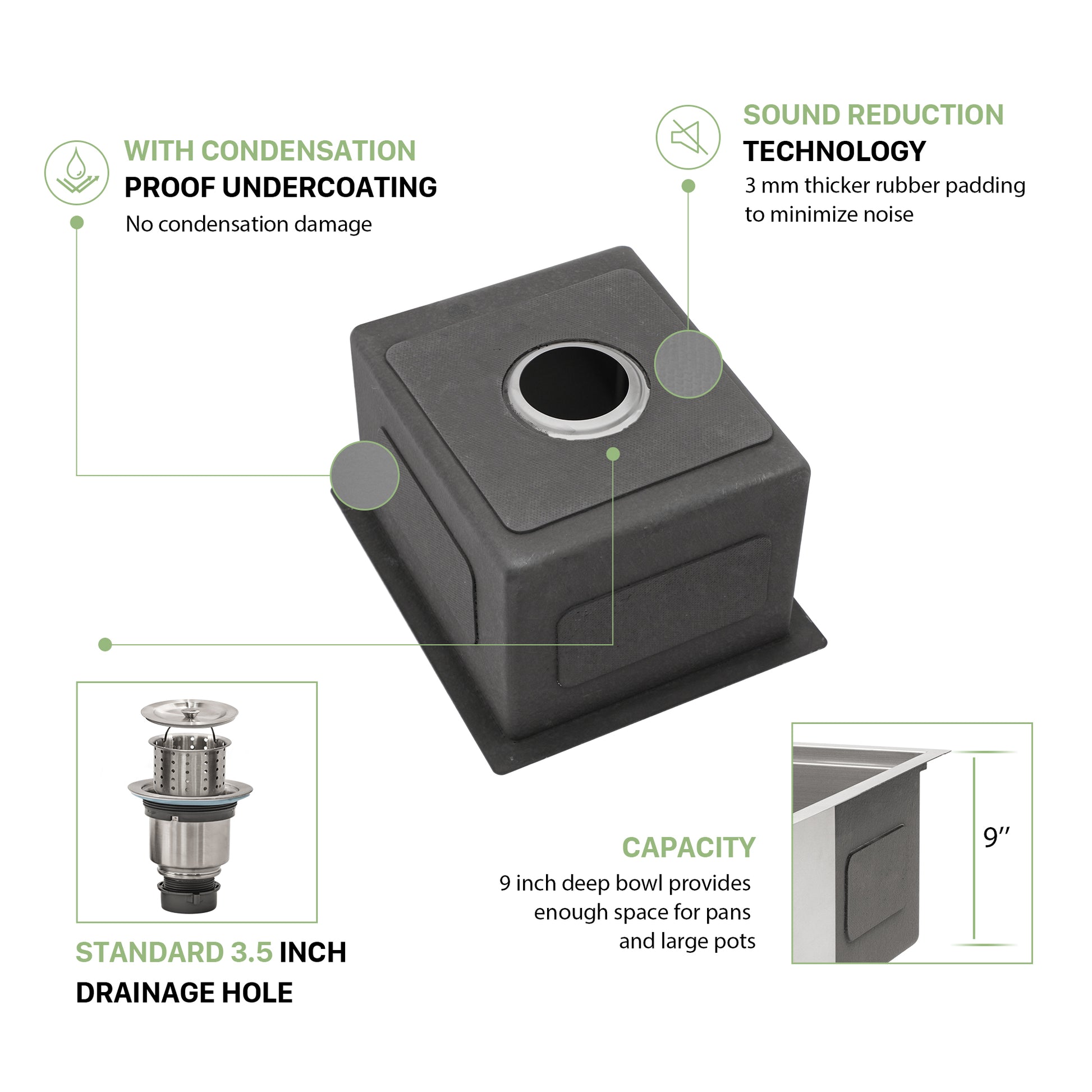 - [Save Space] Upgrade 13 x 15 inch Stainless sink with 9 inch extra deep single bowl, allows you to soak and clean dishes and glasses. Undermount installation provide you with more counter space, create a clean, seamless and modern appearance between the sink and countertop, as well as easy to clean curved corners.