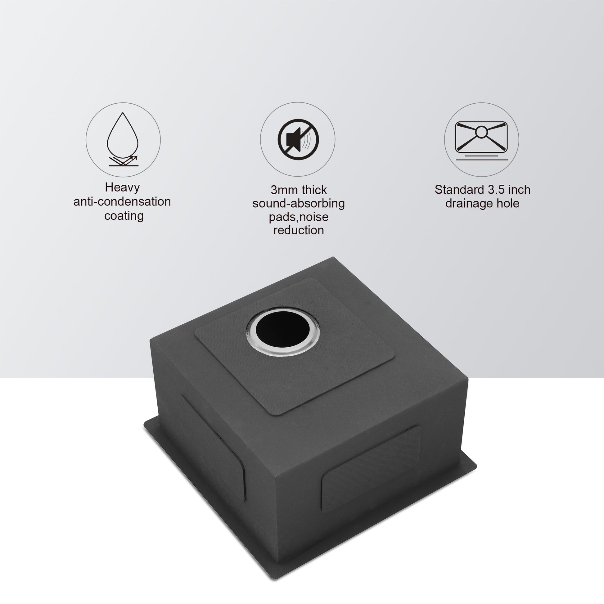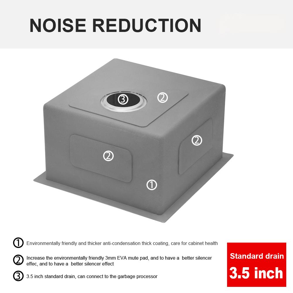 - [Coating and Silencer Pad] There is a thick coating on the outside of the sink to prevent condensation caused by weather changes. In addition, the 3mm thick rubber silencer pad can greatly reduce the noise from the faucet and give you a quieter cooking environment.