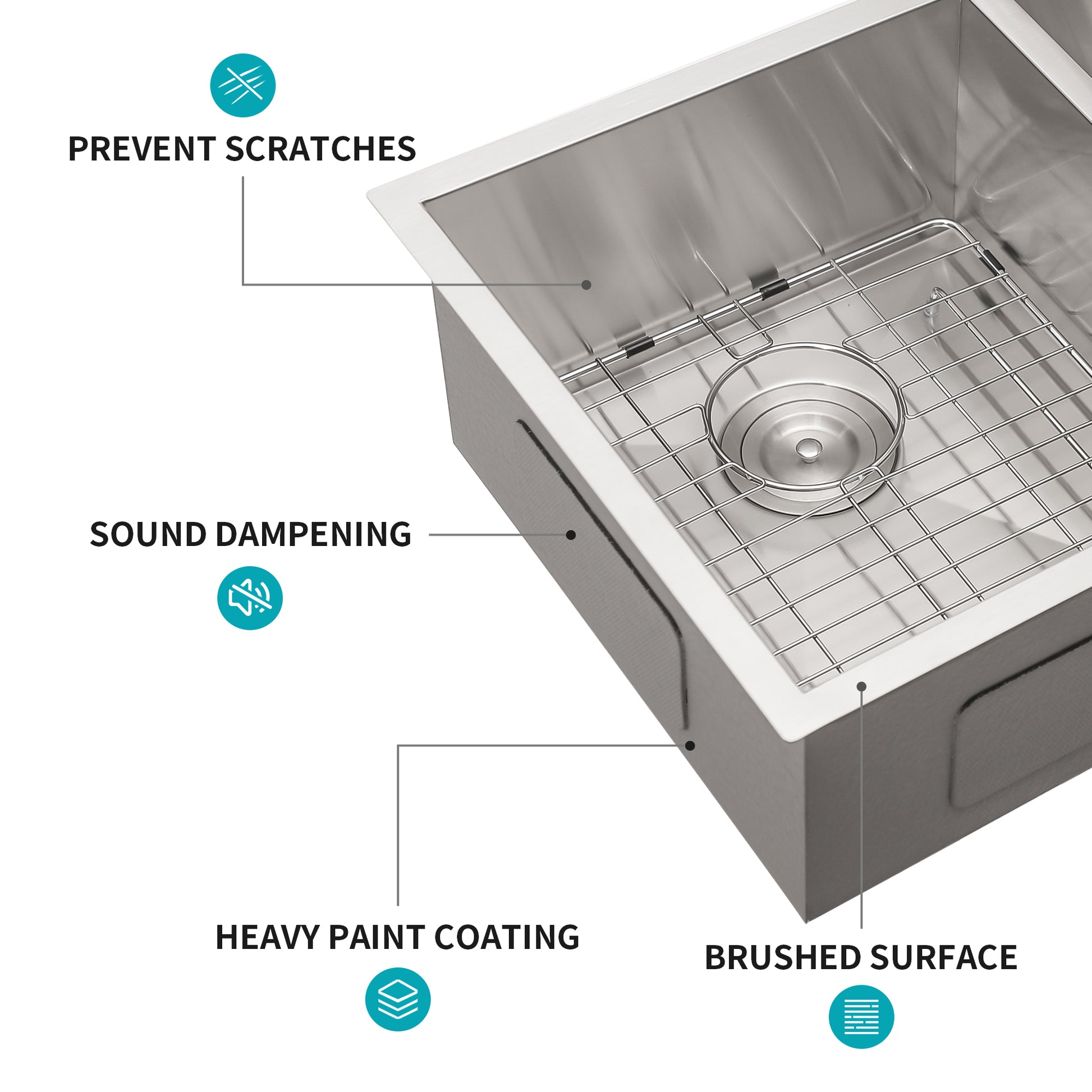 - [Coating and Silencer Pad] There is a thick coating on the outside of the sink to prevent condensation caused by weather changes. In addition, the 3mm thick rubber silencer pad can greatly reduce the noise from the faucet and give you a quieter cooking environment.