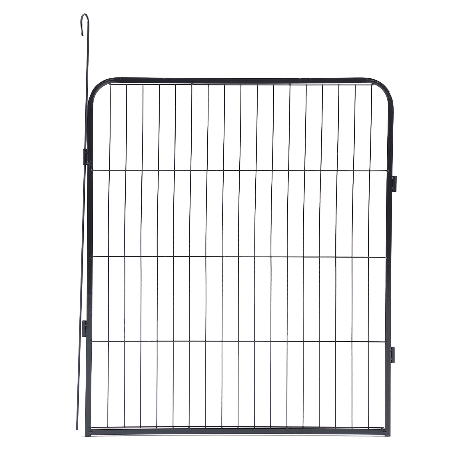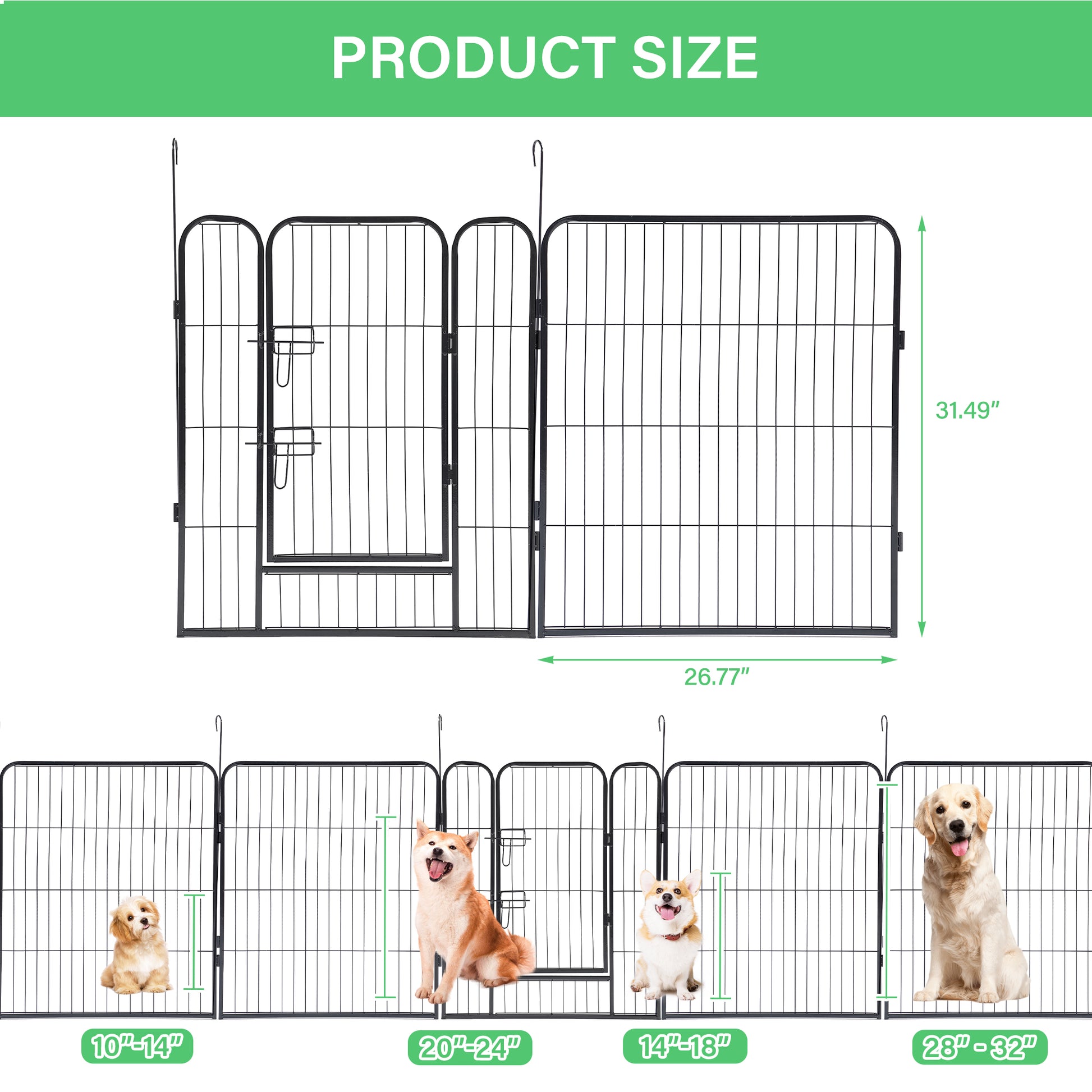 Our pet playpen includes 16-panels which are made of heavy-duty metal Iron tubes, you can ues a long-time. Dimension for Each Panel: 26.77 in. W x 31.5 in. H x 0.51 in. D (W x H x D. The pet fence allows for multiple shapes, such as rectangle, square or octagon. It can be used both indoor and outdoor.