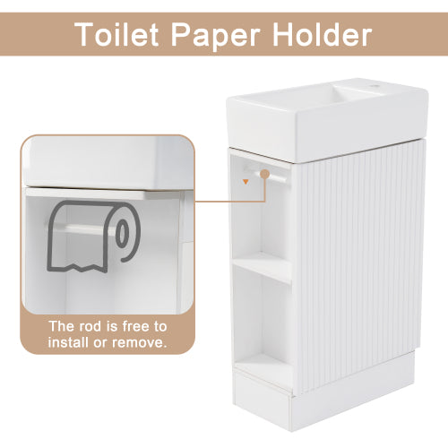 18.6" Bathroom Vanity with Sink, Bathroom Vanity Cabinet with Two-tier Shelf, Left or Right Orientation, White (Old Sku:WF308491AAK)