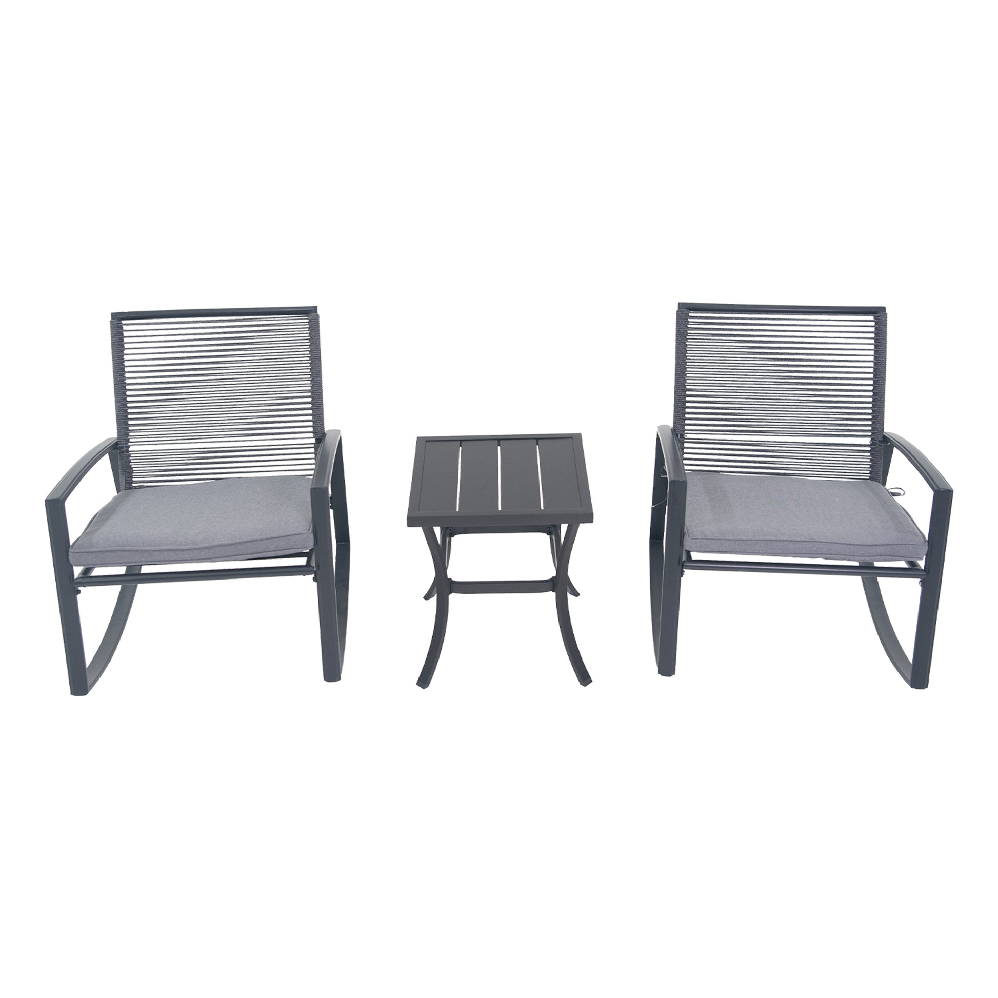 2-person Outdoor Patio Bistro Metal Rocking Conversation Set With Table