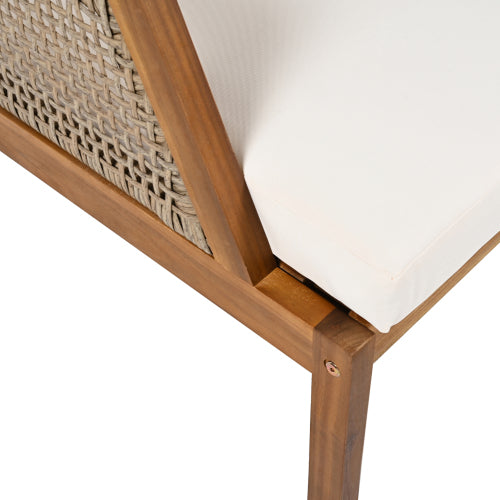 - Premium Materials: This outdoor club chair is crafted from high - quality acacia wood, renowned for its strength and natural resistance to the elements. The sides and backrests of the chairs are exquisitely woven with durable wicker, adding an elegant, handcrafted touch. The wicker not only provides a unique aesthetic but also ensures long - lasting use, combining the natural beauty of acacia's rich grain with the resilience of the woven texture.