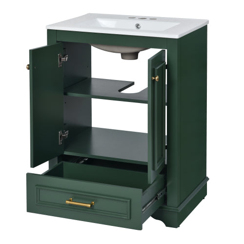 24'' Bathroom Vanity with Ceramic Sink Combo, Modern Freestanding Storage Cabinet with Silver Handles, Soft Closing Doors