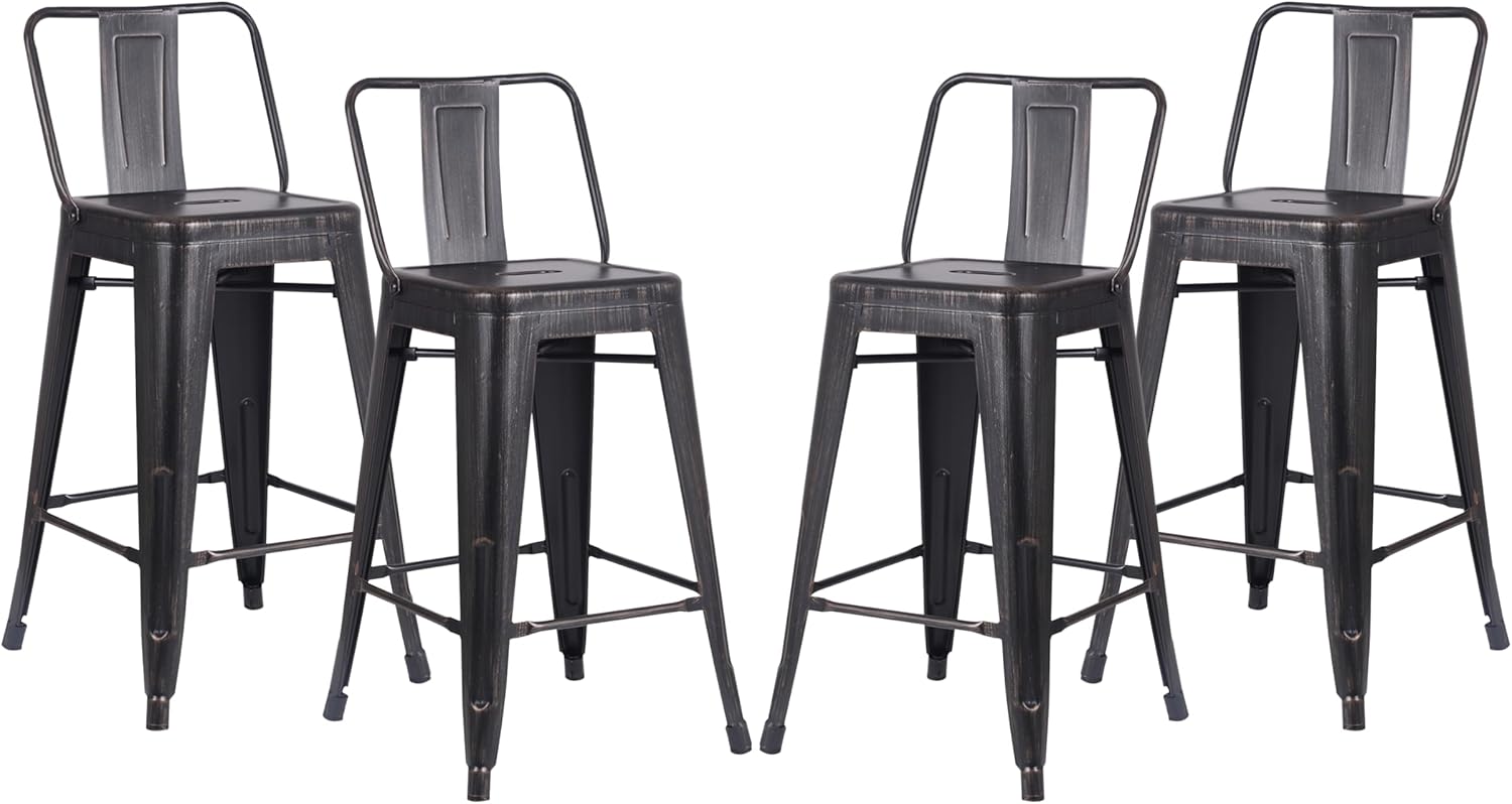 24" Sanded Matte Black Industrial Contemporary Rustic Metal Barstools with Bucket Back, Set of 4