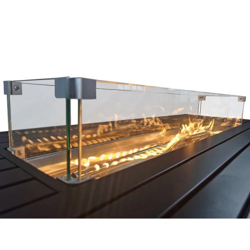 - It features a propane-fueled fireplace insert, complete with a lid, polyester cover, lava rocks, and glass fire beads.