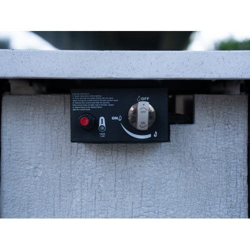 - 28-inch square outdoor heater fiberglass and iron Suitable for courtyard and outdoor Comes with a tabletop cover. Knock-down assembly saves space. CSA certified. charcoal texture. 50000BTU