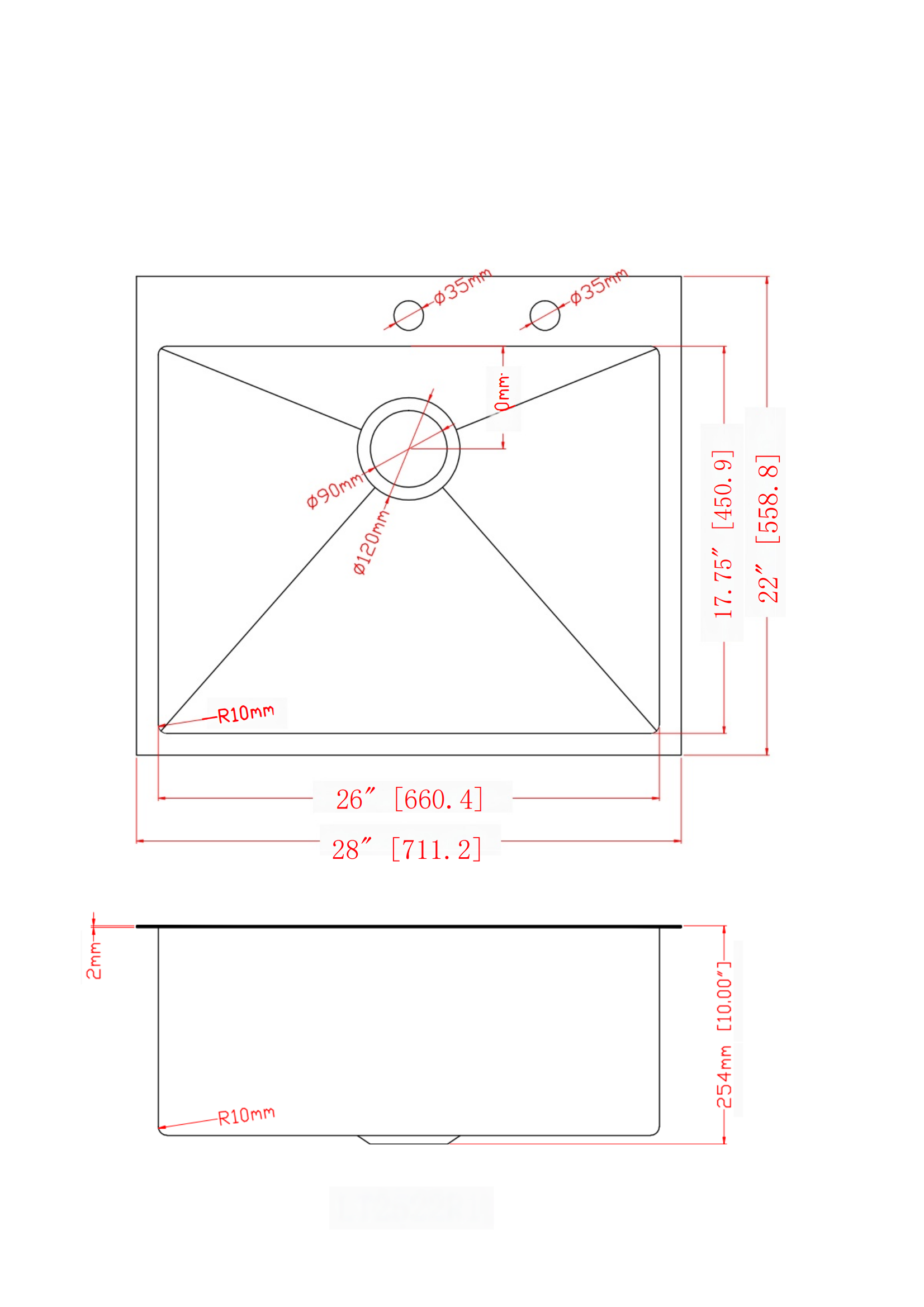 - [Drain Easily, Sound Proof]The X-shaped water guide allows the water to flow down more smoothly, making the sink easier to clean and maintain its beauty.R10 rounded corner design provides more working space and avoids food residue.