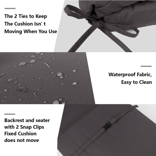 2PCS Set Outdoor Lounge Chair Cushion Replacement Patio Funiture Seat Cushion Chaise Lounge Cushion-grey