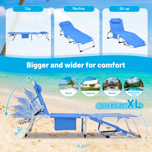 3-in-1 Heavy Duty Tanning Chair with Face Hole Adjustable 5-Position Folding Chaise Lounge Chairs for Outside Portable Lay Flat Beach Lounge Chair for Outdoor