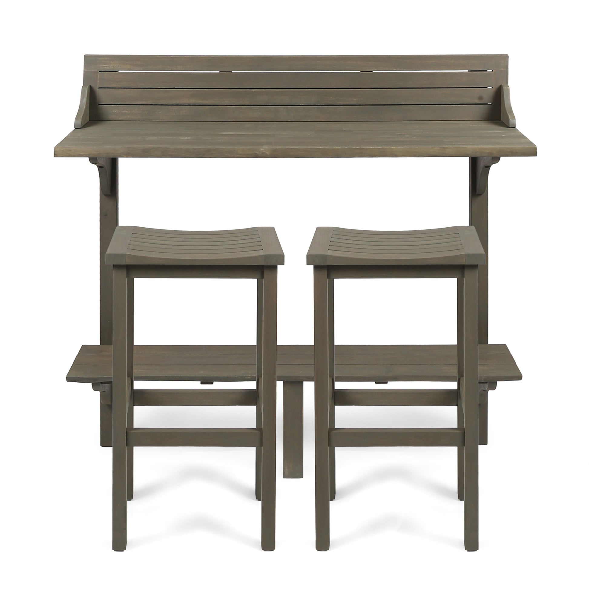 3-Piece Balcony Bar Set with Bottom Shelf Table and 2 Stools, Grey Finish