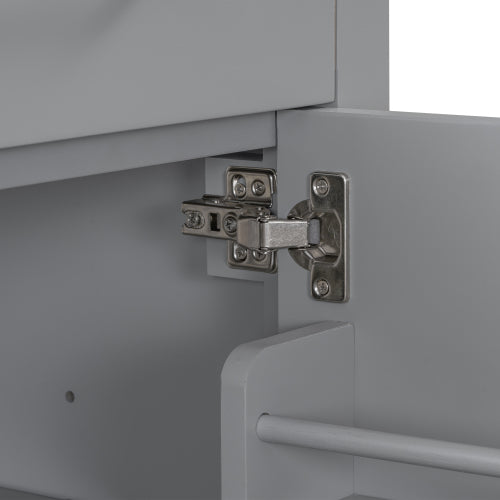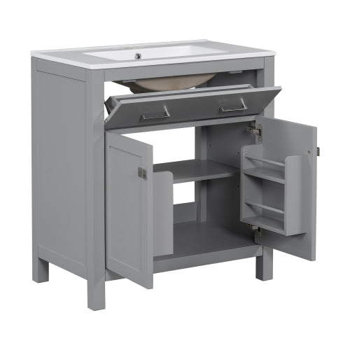 30" Bathroom Vanity with Ceramic Sink, Modern Gray Single Bathroom Cabinet with 2 Doors and a Shelf, Soft Close Doors