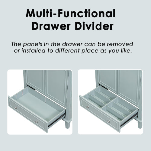 - Multi-functional Cabinet and Drawer: The door of this vanity cabinet is designed as functional storage: a rack with two tiers on the each door for you to store makeup and other stuff. Besides, the lower big drawer can be divided into different parts by the section panel. The panel is removable and you can remove it according to your needs.