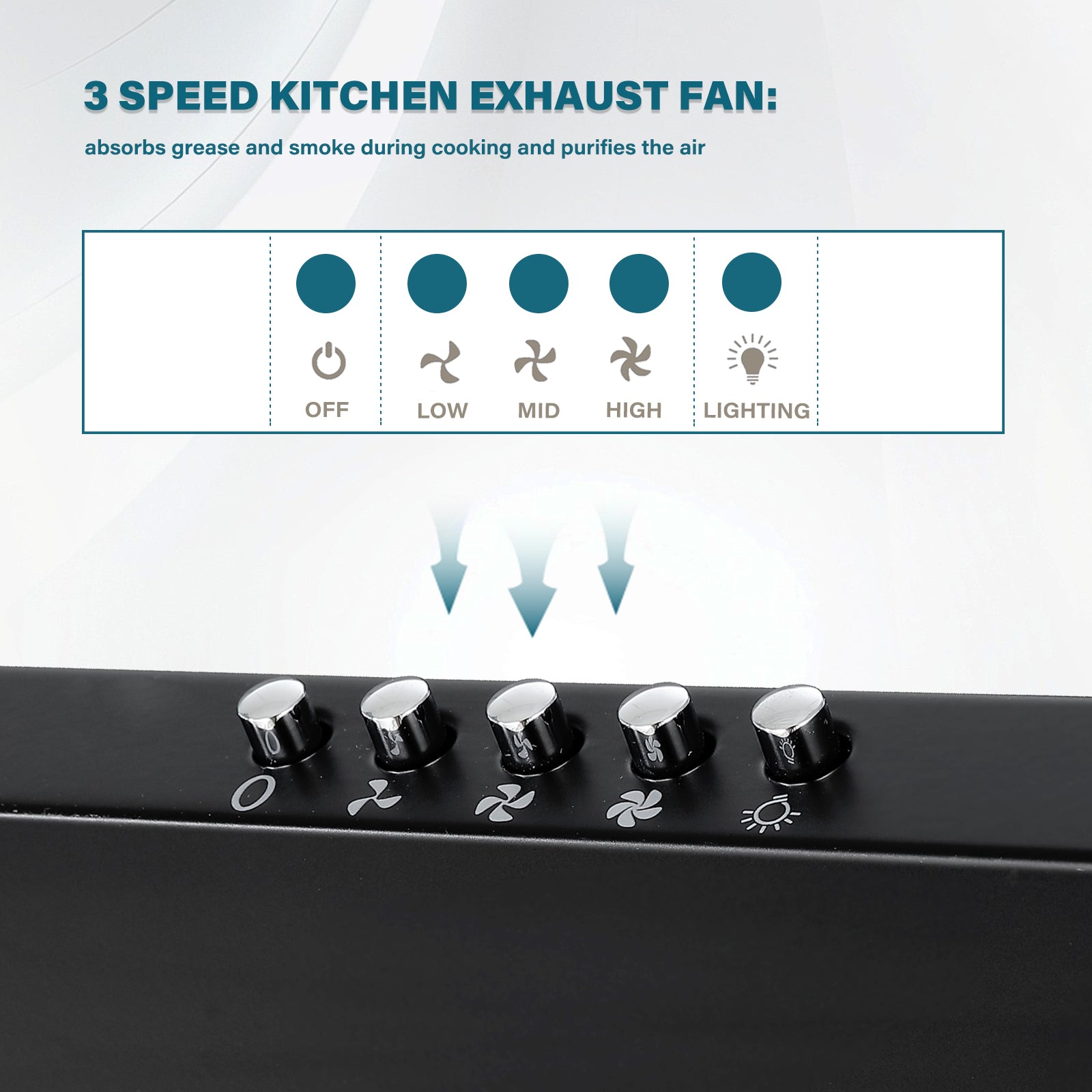 Our range hoods have super suction power, which can instantly absorb oil smoke and make the kitchen air fresh at all times. Low noise operation will not disturb your cooking time. Easy-to-clean materials and design make it easy to keep tidy. Mechanical control is convenient and free. High-quality construction, durable and stylish, adding charm to your kitchen, is your right-hand man for cooking.