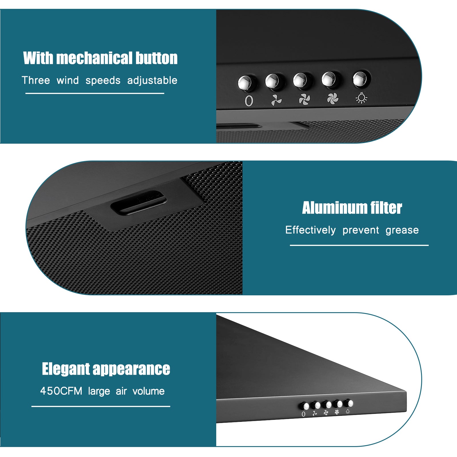 30-in 450-CFM Convertible Black Wall Mount Range Hoods