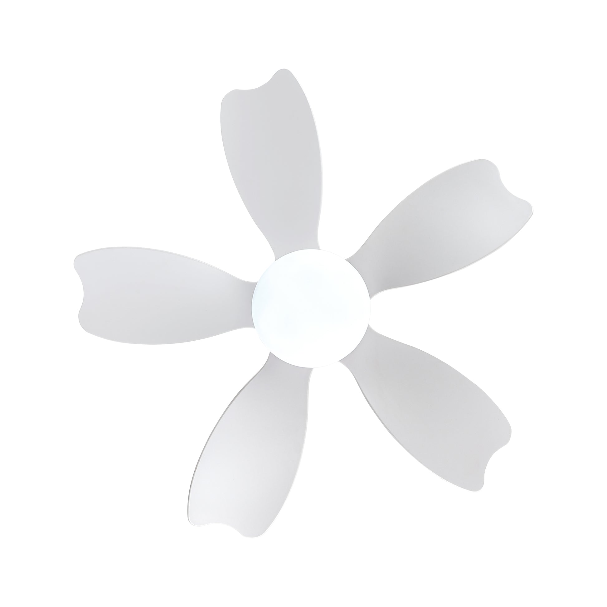 - Matte white fan body finish and white light cover