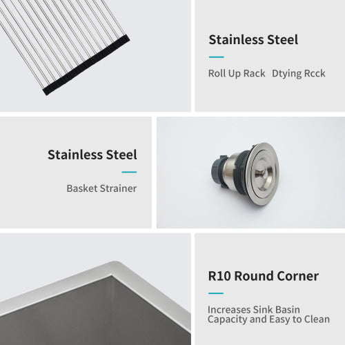 - [Included in the Package]Comes with this kitchen sink: 1 x 304 stainless steel dish grid, 1 x drain assembly, 1 x drying rack,1 x installation clips, 1 x cutout template and installation Guide.