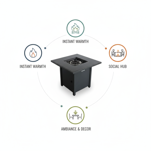 - Turn any chilly evening into a cozy get-together by huddling around this square fire pit table.