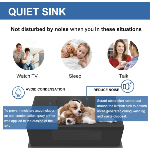 - Easy to Clean and Noise-Resistant: R10 rounded corners provide a stylish and modern appearance, make more easier to clean, food residues don't get stuck in the corners of the sink. The 3mm thick rubber pads and anti-condensation coating reduce noise while protecting your cabinets from damage, create a very comfortable kitchen environment for you