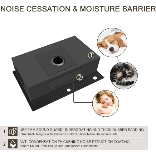 - Multiple features: our gunmetal black drop-in single bowl kitchen sink is designed with X water guide line on bottom which is faster to remove water and avoid clogging. Heavy-duty sound guard undercoating and thick rubber pad assures exceptional noise reduction and quiet dependability and R10 round corner is easier to clean