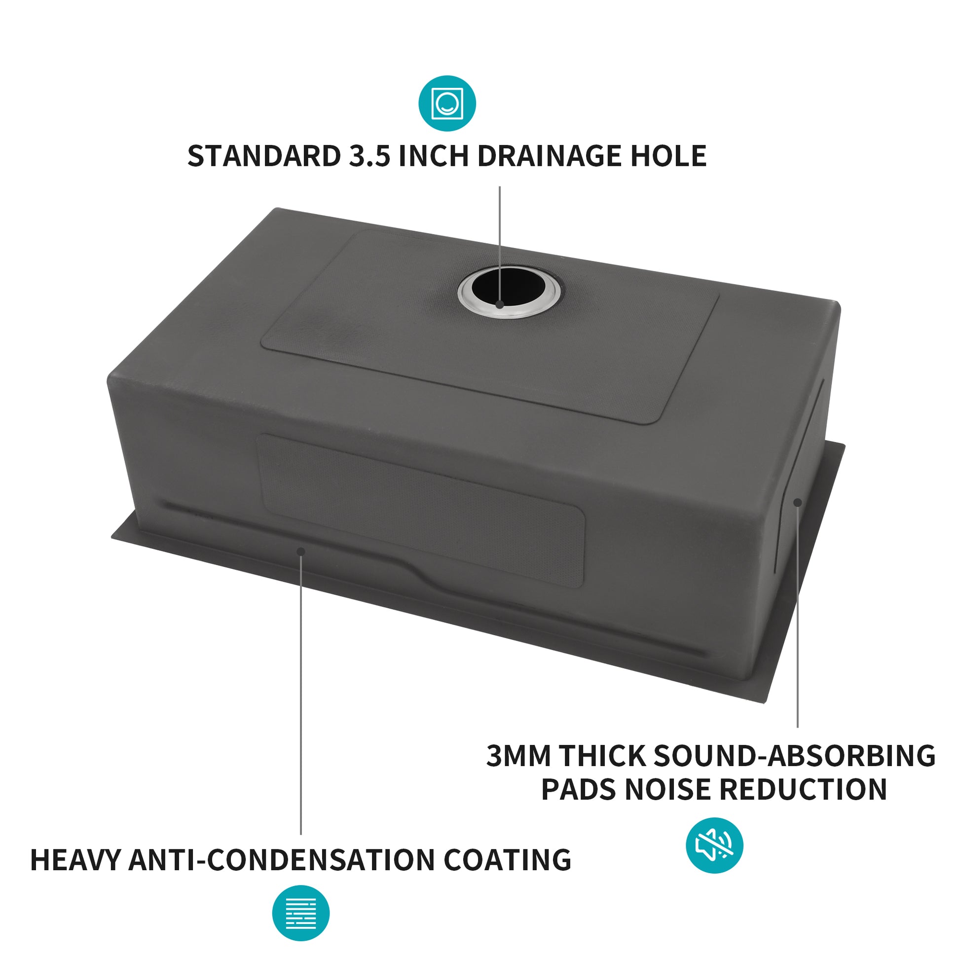 - [Coating and Silencer Pad] There is a thick coating on the outside of the sink to prevent condensation caused by weather changes. In addition, the 3mm thick rubber silencer pad can greatly reduce the noise from the faucet and give you a quieter cooking environment.