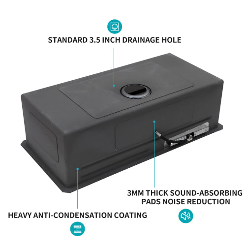 - [Coating and Silencer Pad] There is a thick coating on the outside of the sink to prevent condensation caused by weather changes. In addition, the 3mm thick rubber silencer pad can greatly reduce the noise from the faucet and give you a quieter cooking environment.