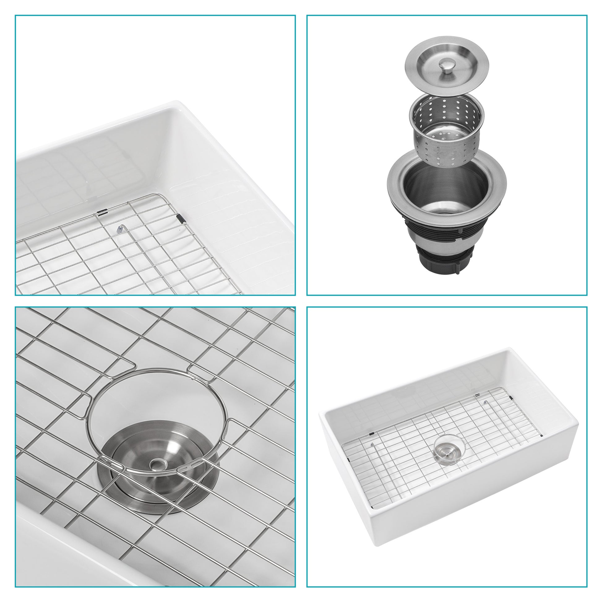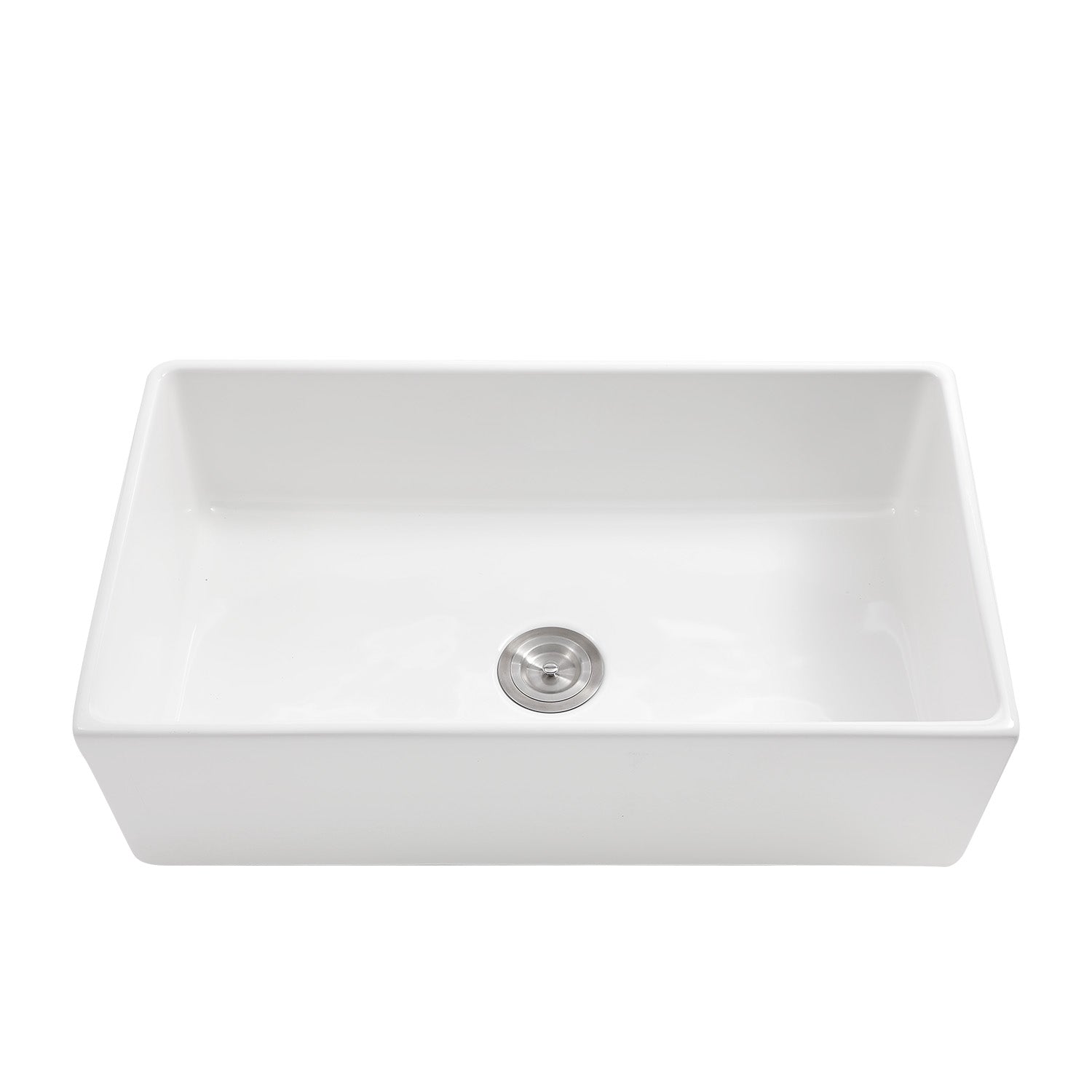 - [Superior Durability & Timeless Elegance] This white farmhouse kitchen sink constructed of ceramic for extreme strength and durability. Kitchen Sink surface is extreme resistance to chips, abrasion or scratches and discoloration for years of beauty and reliable performance.
