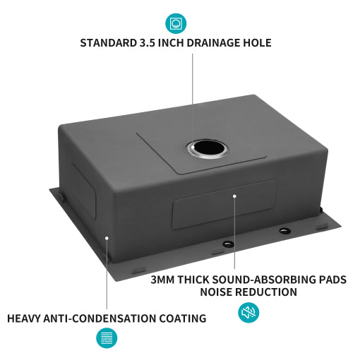 - [Coating and Silencer Pad] There is a thick coating on the outside of the sink to prevent condensation caused by weather changes. In addition, the 3mm thick rubber silencer pad can greatly reduce the noise from the faucet and give you a quieter cooking environment.