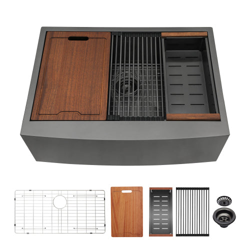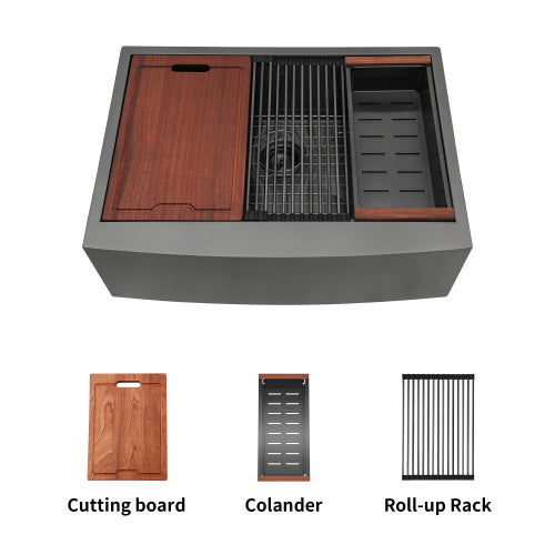 33x22x10"Farmhouse Apron Single Bowl Stainless Steel Kitchen Sink with Workstation