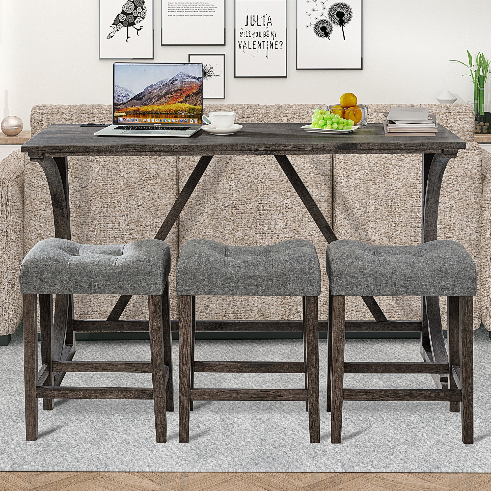 4-Piece Bar Table Set with Power Outlet, Dining Bar Table and Chairs Set,Bar Table Set with 3 Padded Stools for Living Room, Dining Room, Game Room, Dark Gray