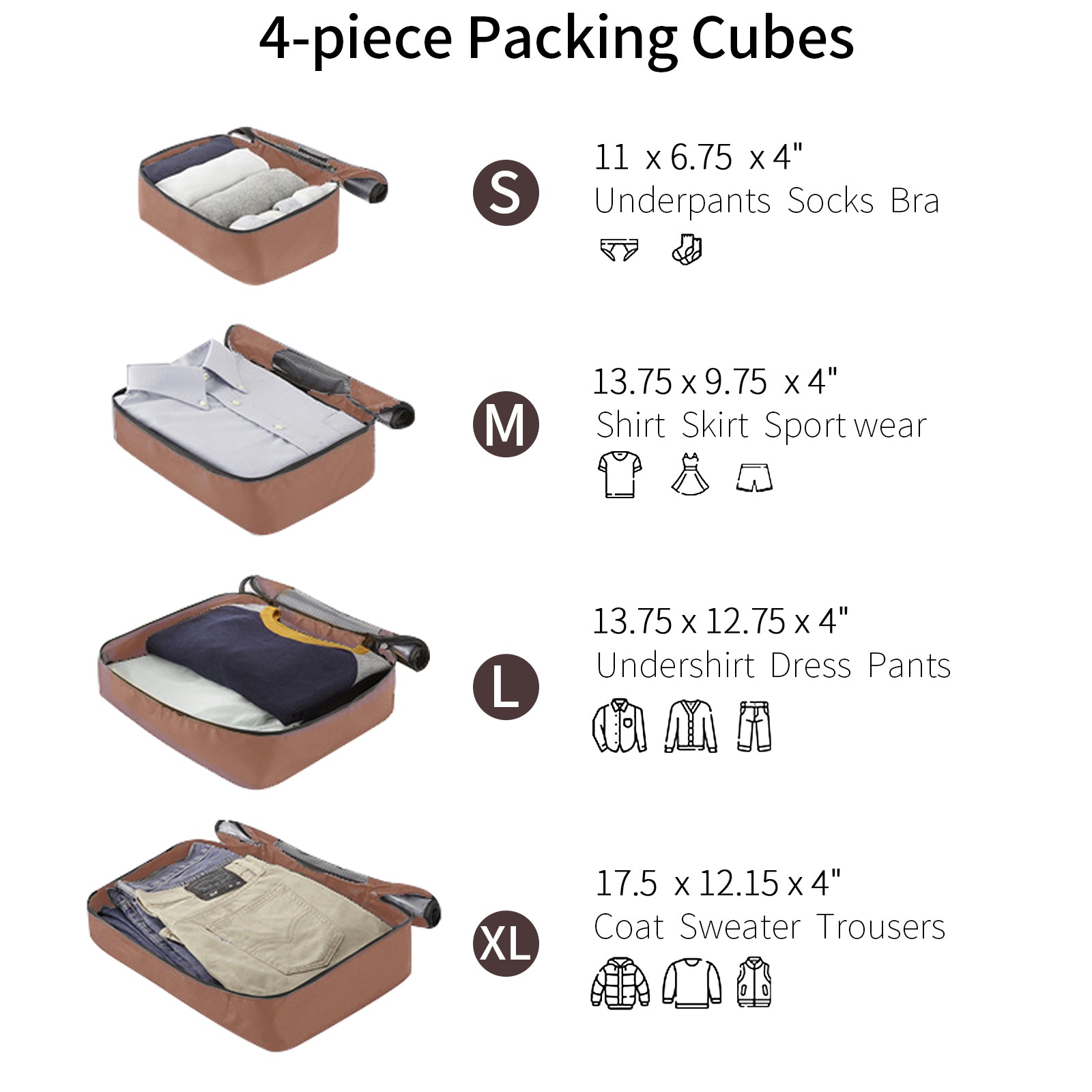 - 4 packing boxes keep your clothes, toiletries, and other items separated, making the interior more organized. 24-inch and 28-inch suitcases can be expand with 20% extra space to accommodate more souvenirs. 4 suitcases can be nested inside each other to save space for your convenience.