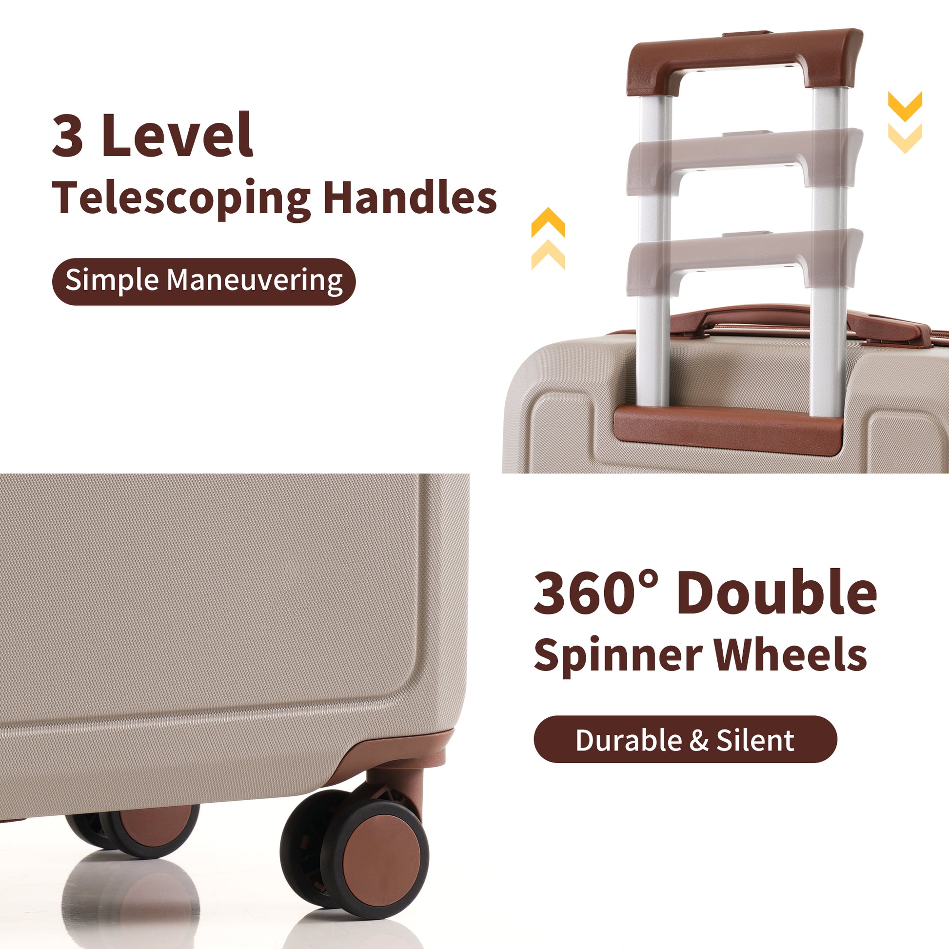 - [360° Spinner Wheels] Each luggage is fitted with quad smooth-glide base 360 degree swivel spinner wheels for easy transportation through terminals, on concrete, cobblestone and more.