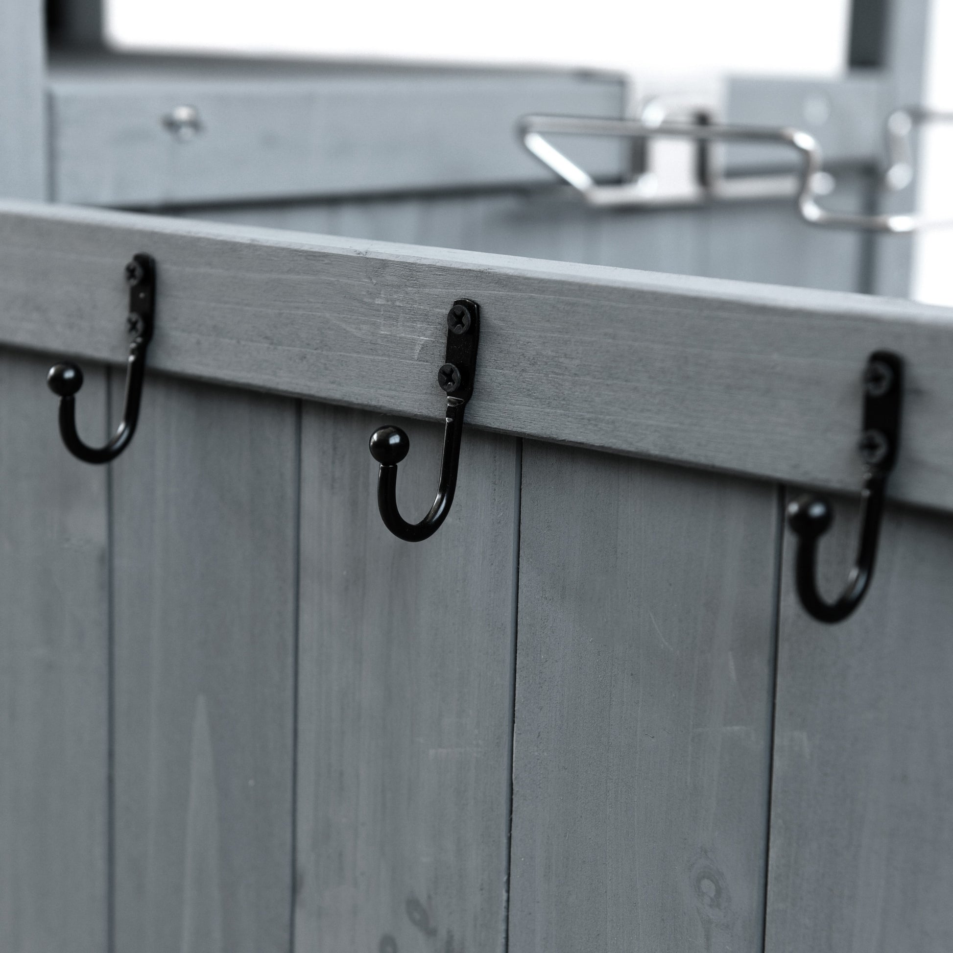 - [Unique Product Details] This grill cart has many unique little designs that you will love. There are four “S” shaped metal hooks on the side of the drop leaf for hanging outdoor tools and three hooks in the storage door for small towels and other items. On the right side of the product there is a small metal trash rack for hanging small plastic trash bags to avoid outdoor pollution. Last but not least, a bottle opener on the side is essential for a good outdoor grill cart.
