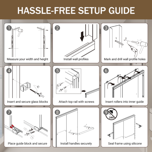 - Customizable Dimensions: The double sliding shower door measures 48" W x 72" H, adjustable from 44" to 48" by cutting the guide rail for a tailored fit.