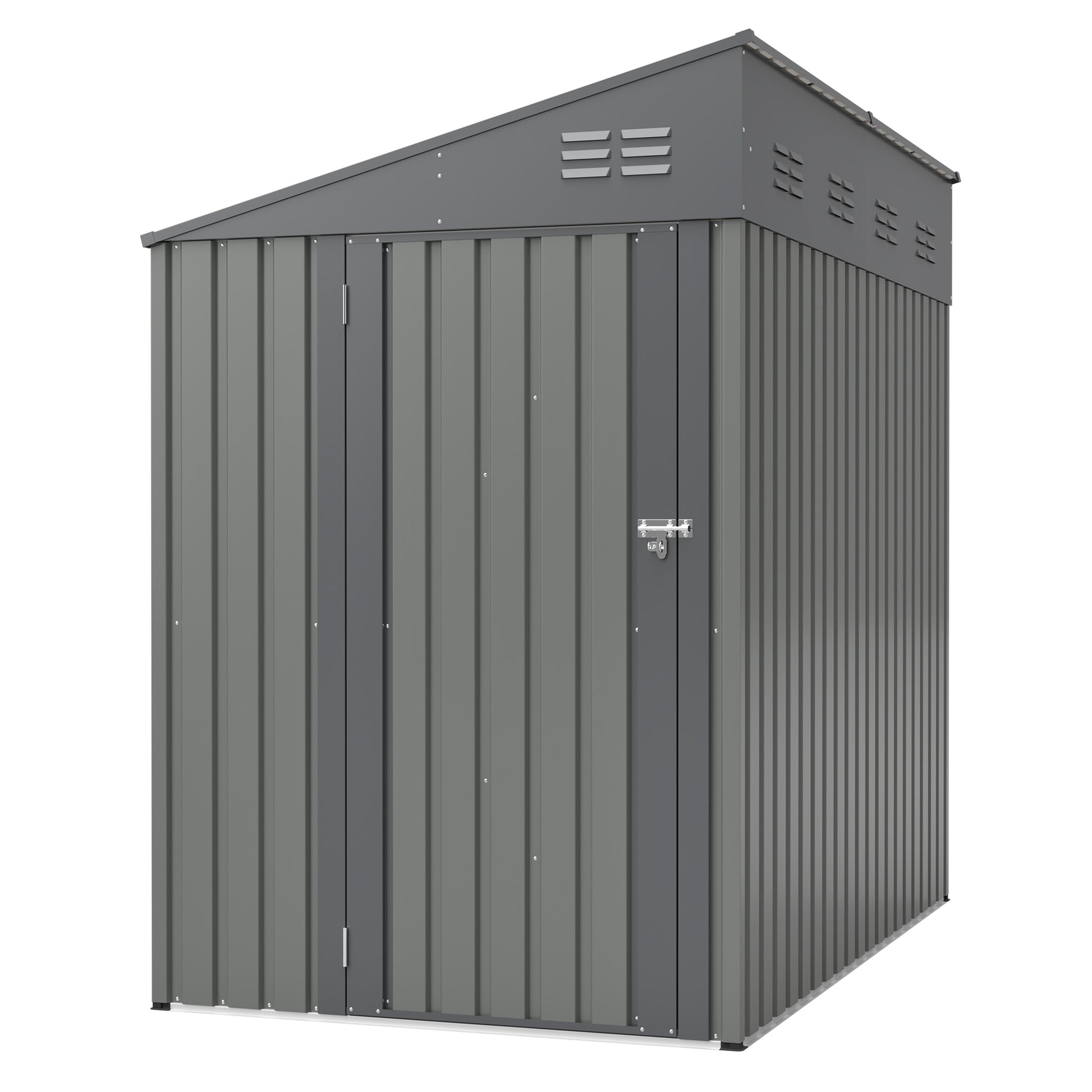 - 2. Ventilated Design with Secure AccessEquipped with dual air vents at the front and rear, this shed promotes consistent airflow to reduce heat buildup and prevent moisture or musty odors. The wide double-door design allows easy loading of large items such as lawnmowers and bicycles. Additionally, the integrated lock mechanism keeps your valuables safe and secure.