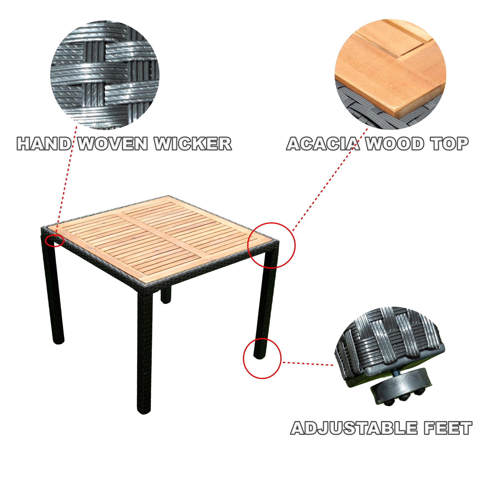 - STYLISH & BEATIFUL : Modern and stylish combination with Acacia table top make this wicker dining set look fashionable and add the beauty for your courtyard which is perfect for any outdoor and indoor use.