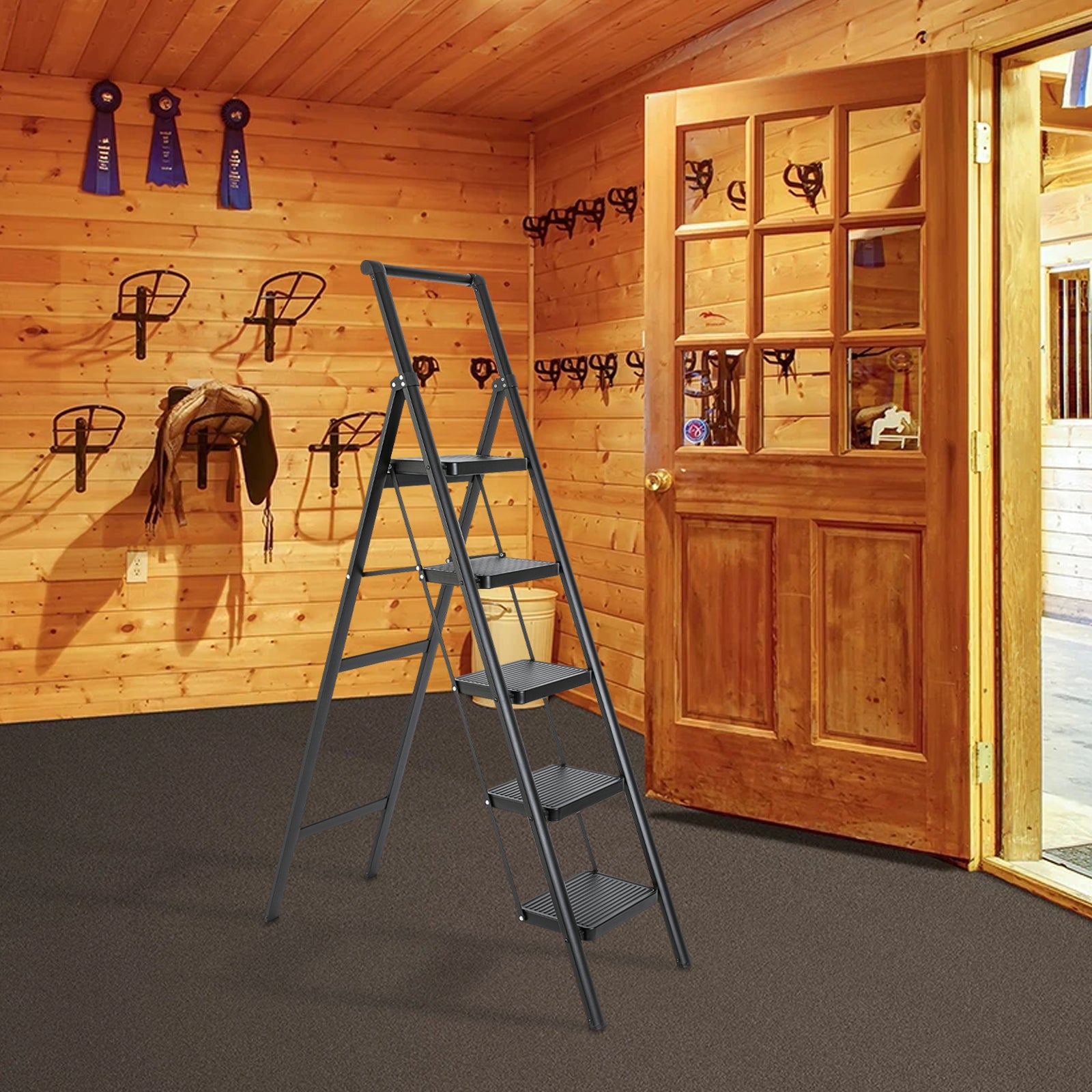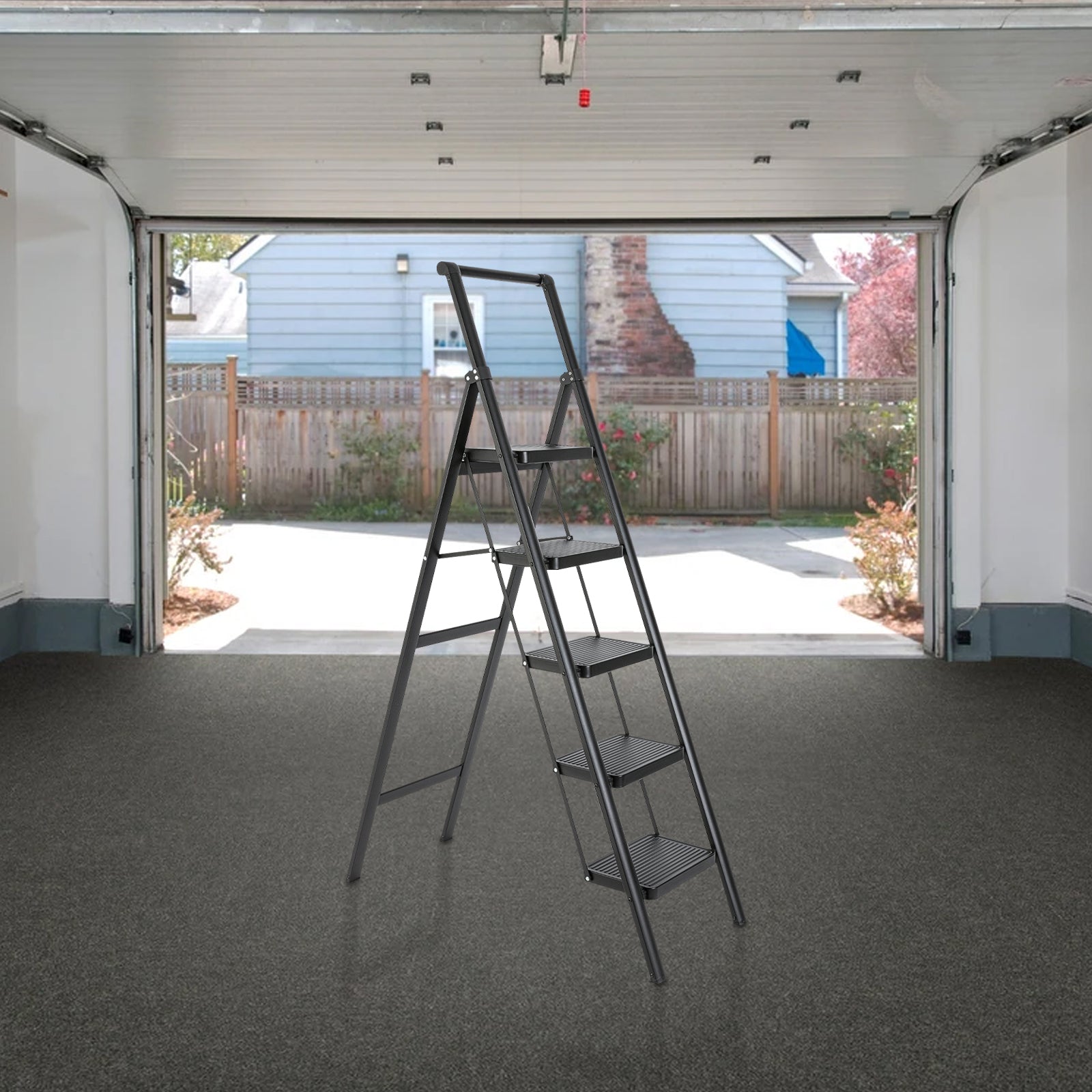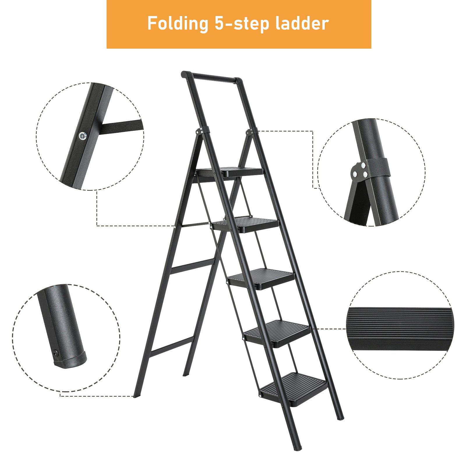 5-Step Aluminum Folding Step Stool Ladder 330 lbs. Load Capacity Type IA Duty Rating (5.54 ft. Reach Height), Black