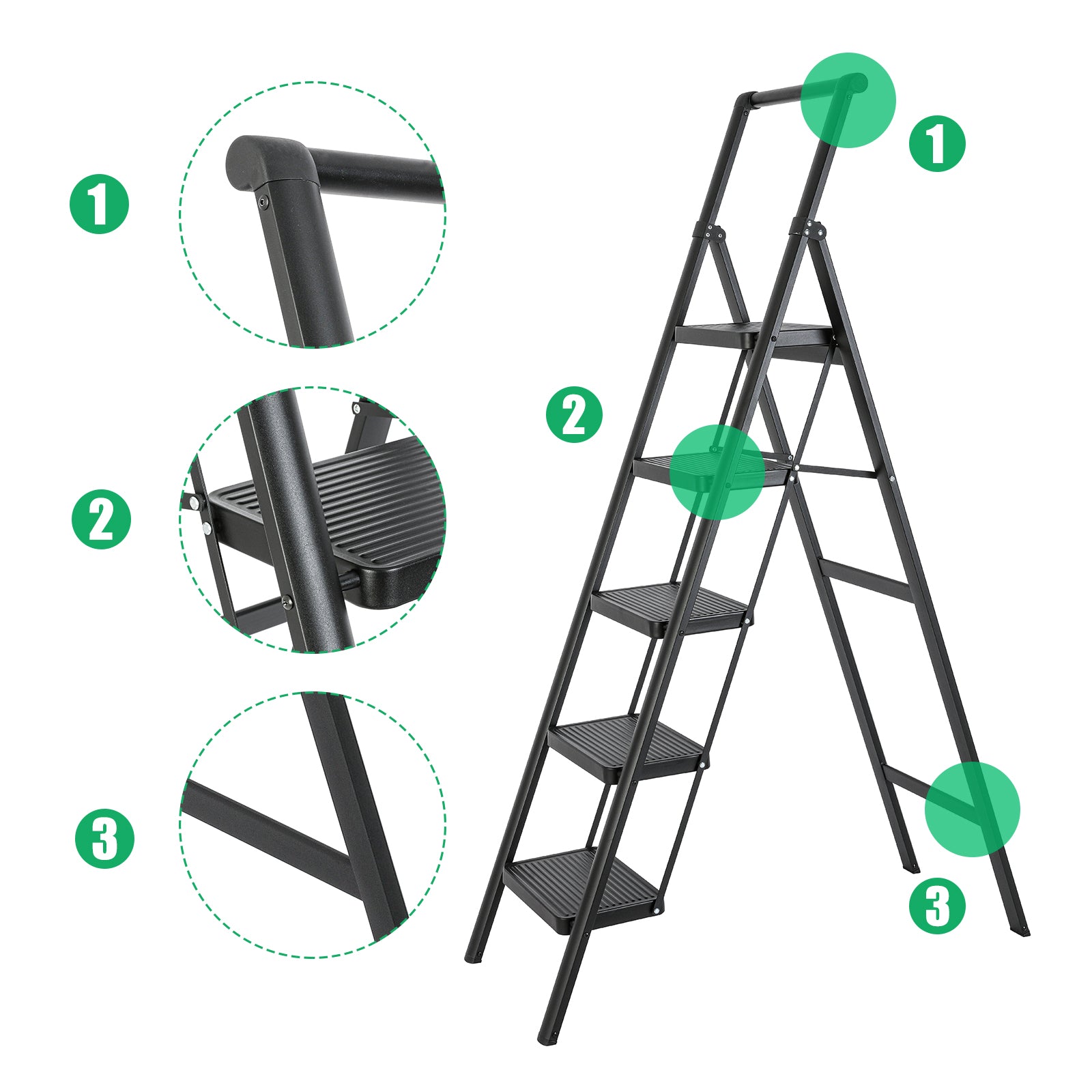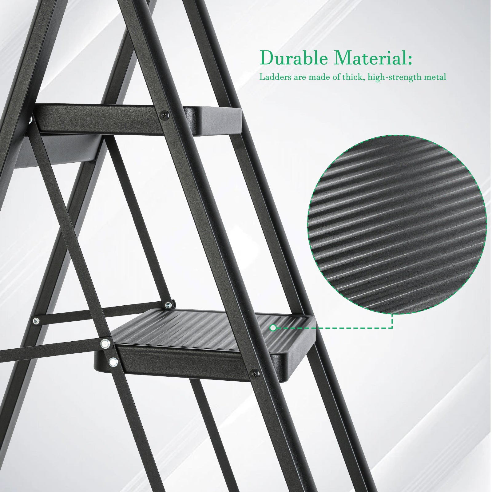5-Step Steel Folding Step Stool Ladder 330 lbs. Load Capacity (1.5 ft. Industry Standard Ladder Height),Black