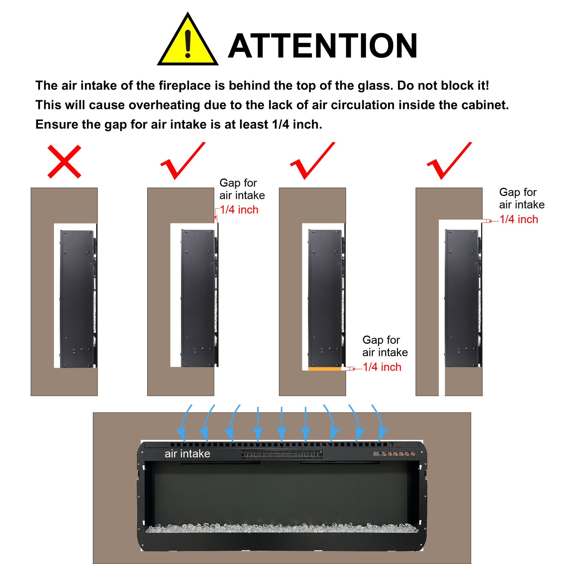 This stylish 50-inch wall-mounted electric fireplace combines modern aesthetics with functionality, featuring easy operation through a remote control or touch buttons. Designed for flexible installation, it can be mounted on the wall or recessed into any space, ensuring a seamless integration that enhances your room's ambiance while providing efficient heating. With complete installation accessories included and a CSA-certified safety rating, this fireplace is a perfect blend of comfort, safety, and convenience.