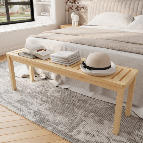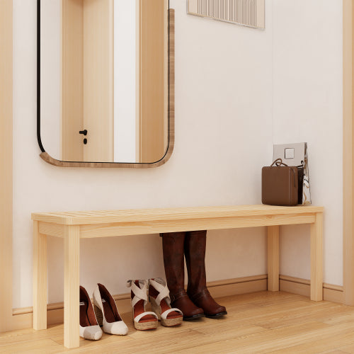 52.1" Outdoor Solid Wood Knot-Free Pine Backless Dining Swimming Pool Beach Bench with Slatted Seat – Modern Bench, Perfect for Patio, Backyard, Entryway, Hallway, Living Room, Bedroom, Front Door