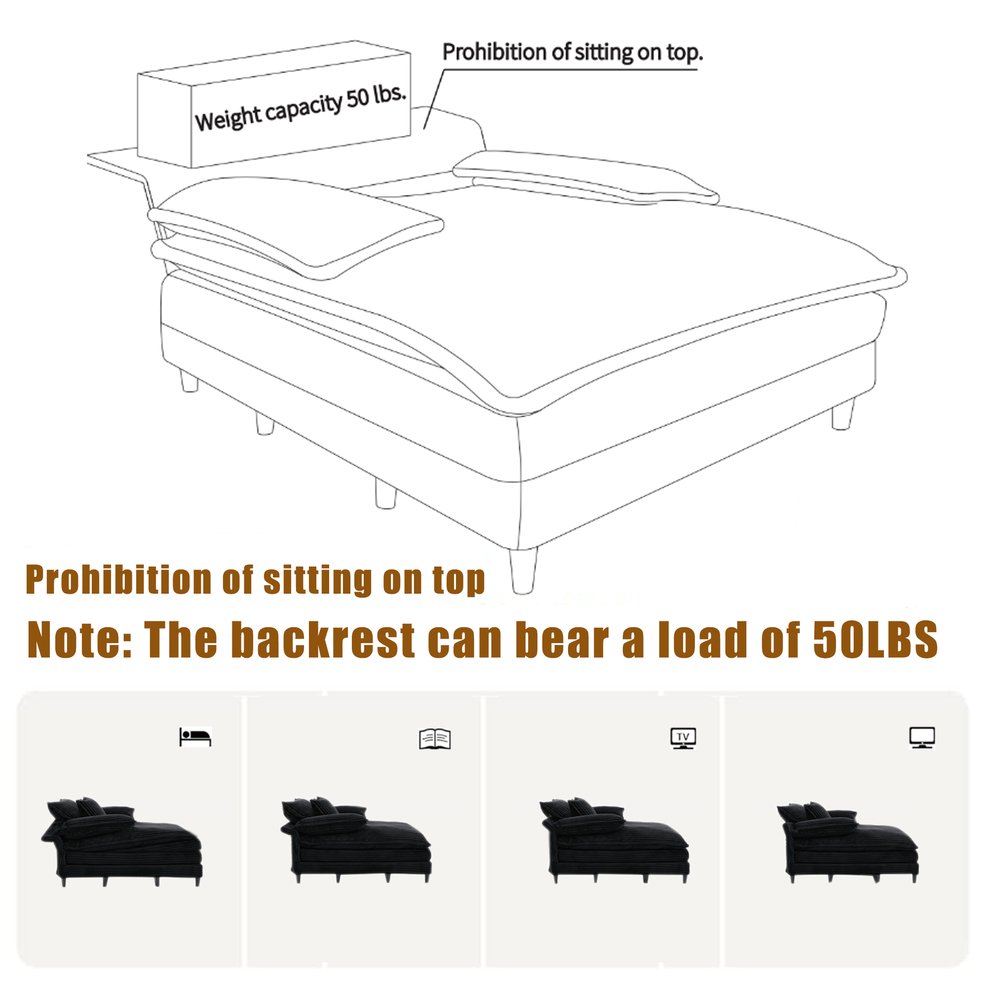 54.75" W Oversized Chaise Lounge Chair,Fluffy cushioned sofa bed,Deep Seat,Corduroy,2 Pillows,4 gears can be adjusted,Leisure Sleeper Sofa Chair for Living Room, Black