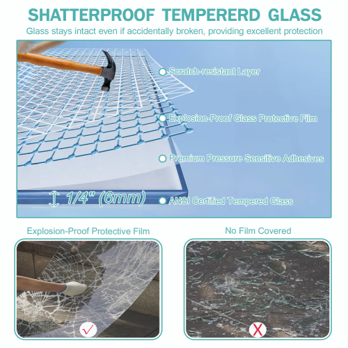 - 【Secure Tempered Safety Glass】Made with 1/4-inch (6mm) SGCC-certified tempered glass, this door offers superior impact resistance and safety. The explosion-proof glass remains intact even if damaged, providing a secure and worry-free shower experience for families.